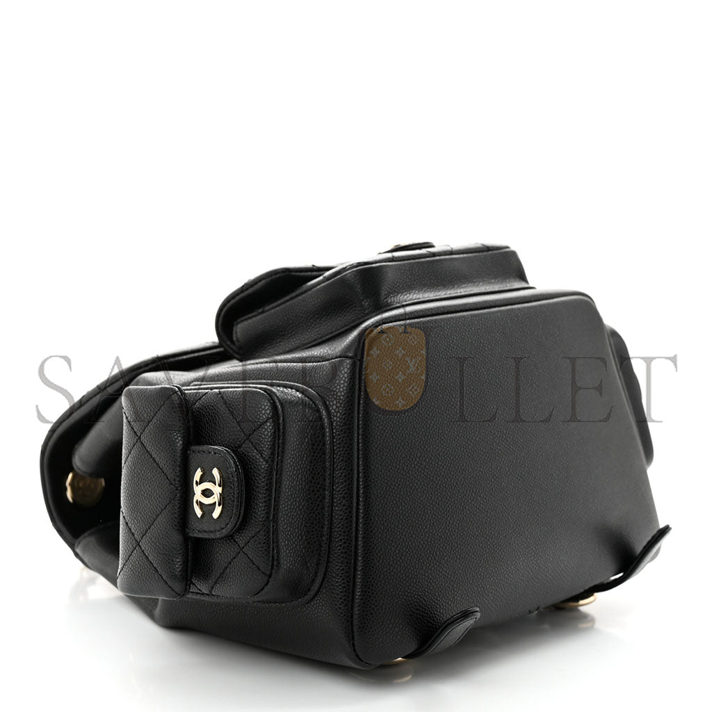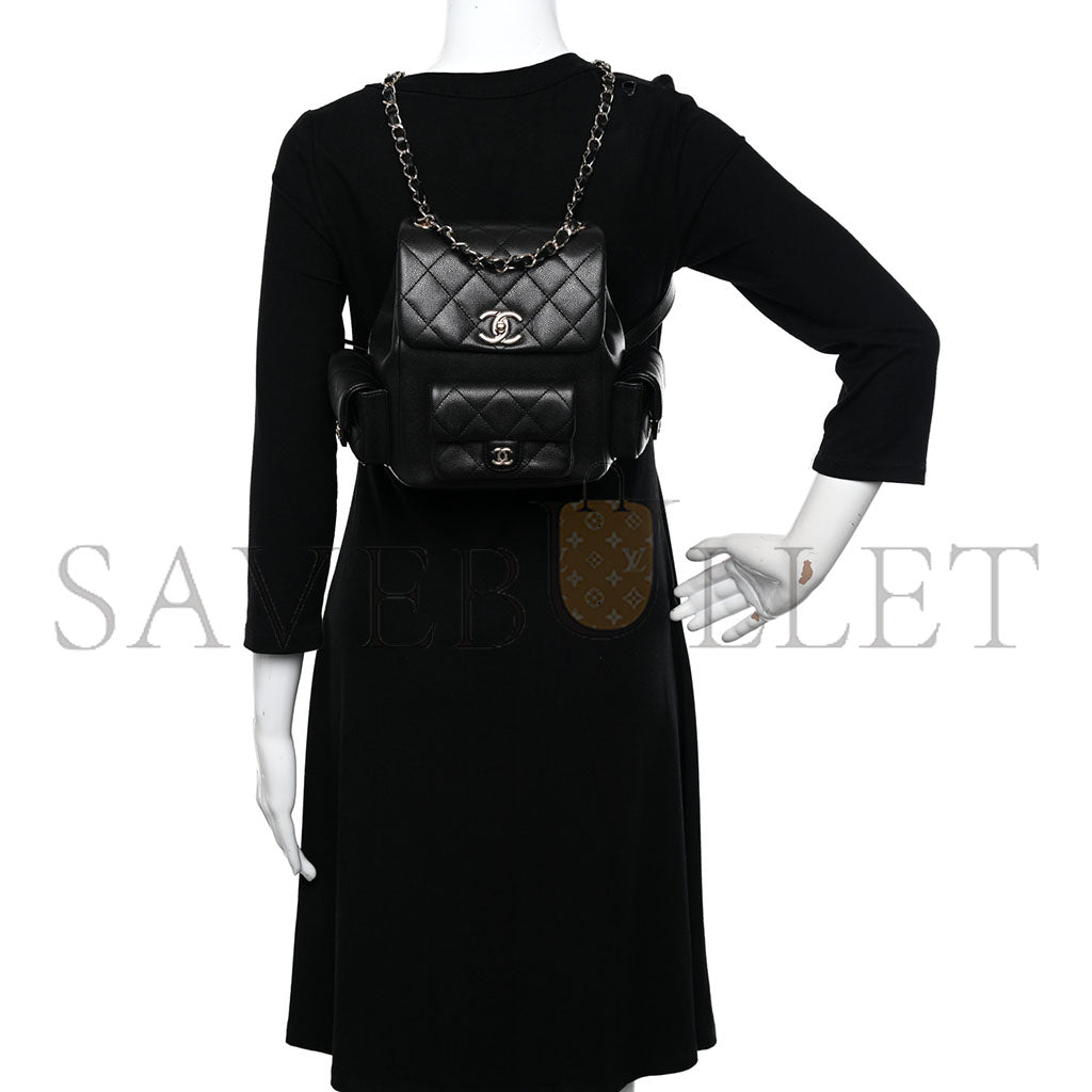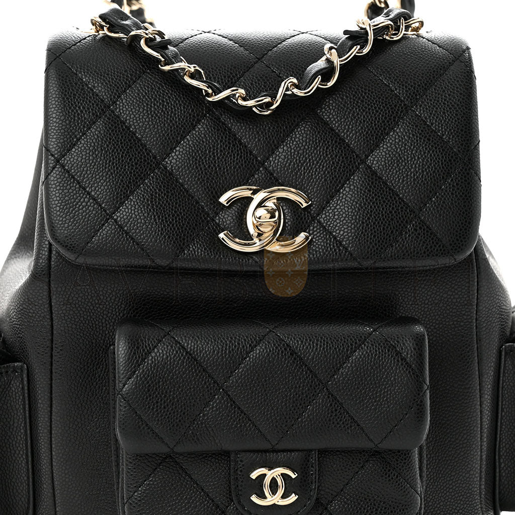 シャネル マスター シャイニーキャビア キルティング スモールポケット ドローストリング バックパック ブラック (21.5×19.5×12cm)