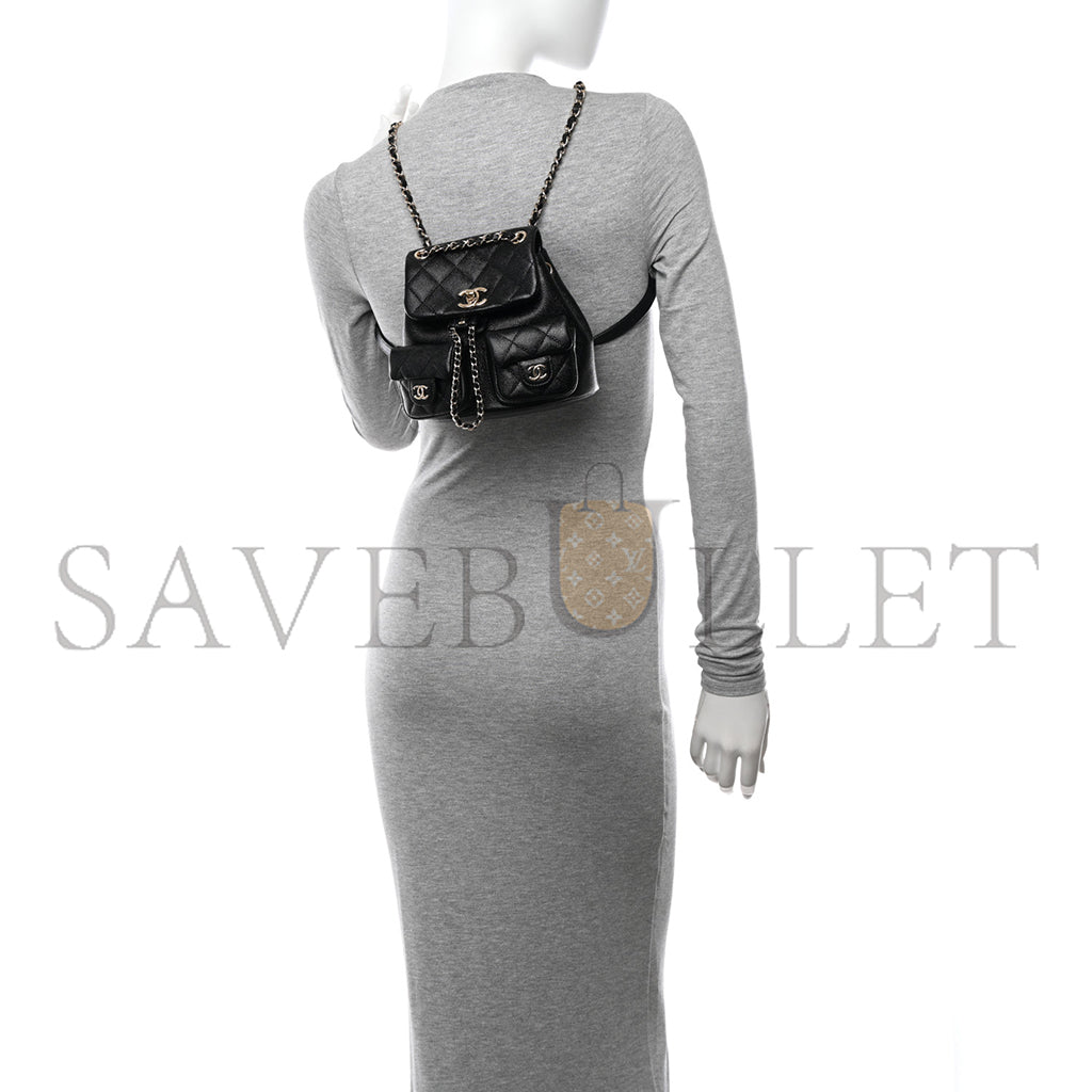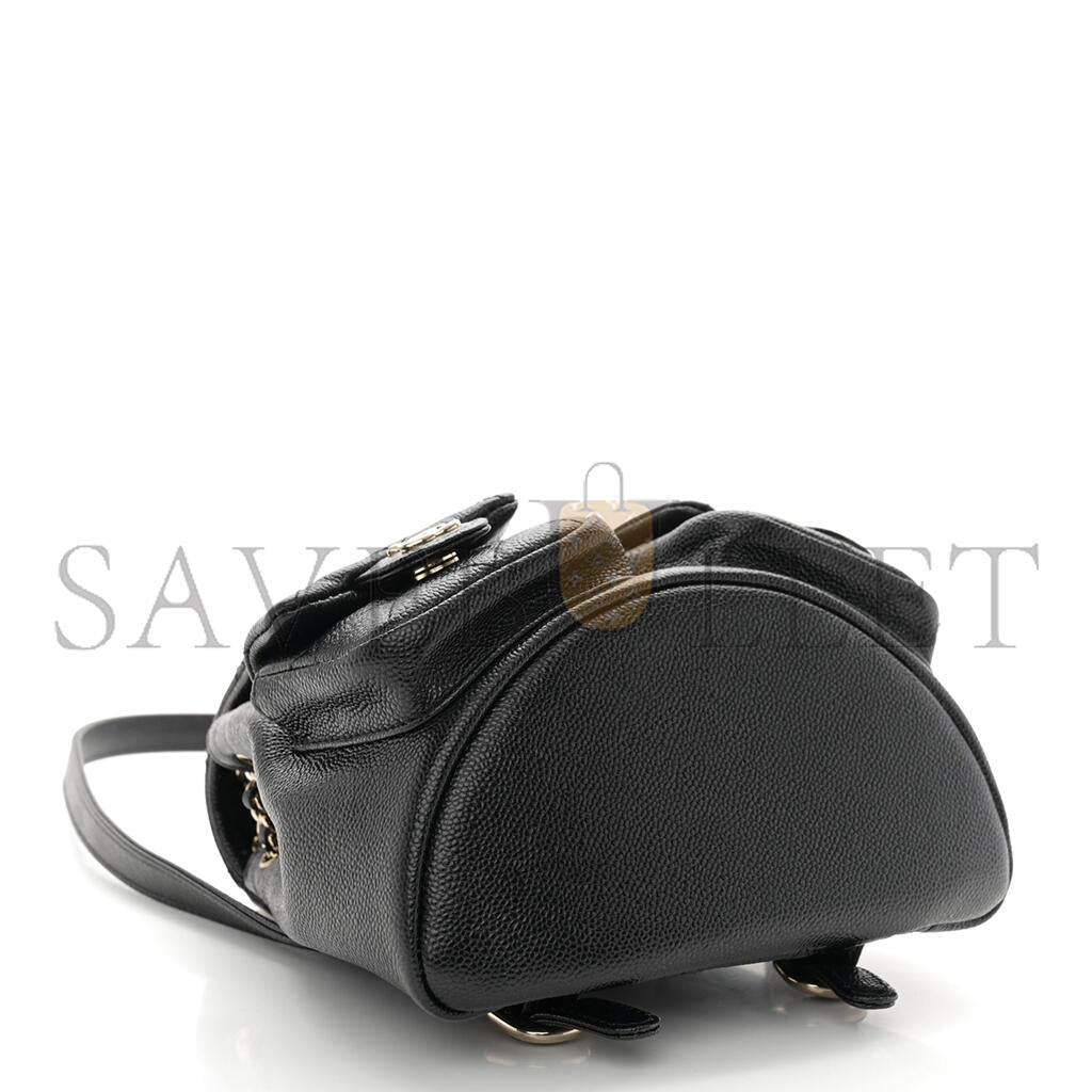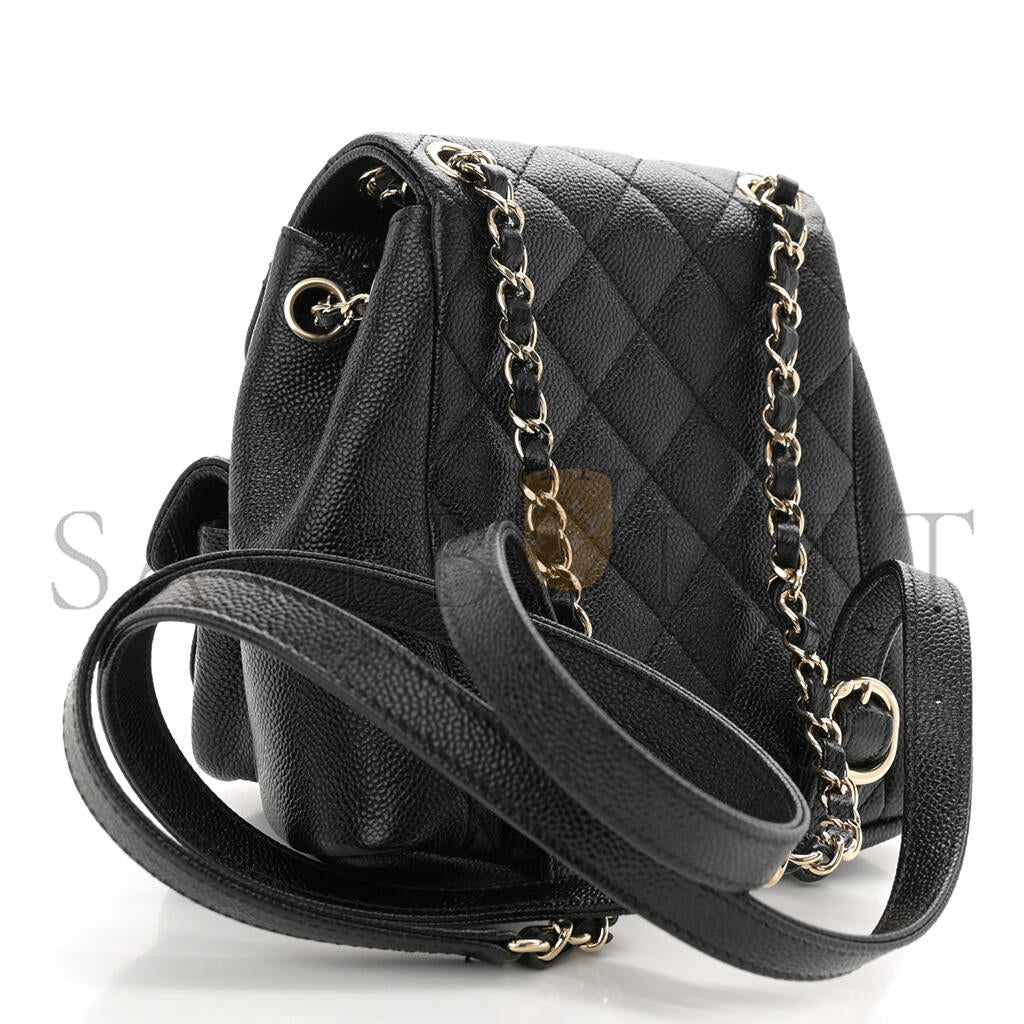 シャネル マスターシャイニーキャビア キルティング スモール ドゥマポケット ドローストリング バックパック ブラック (17.5×16.5×10cm)