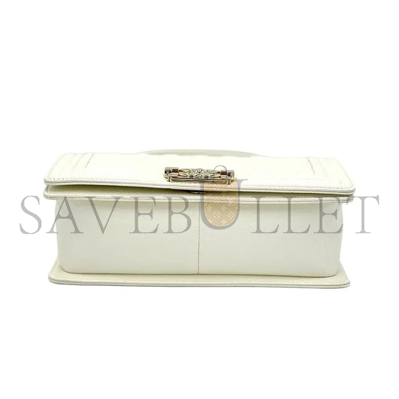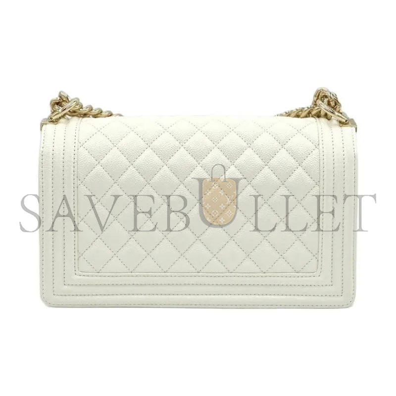 シャネル キャビア ミディアム キルティング ボーイ フラップ ホワイト A67086 (25*15*8cm)