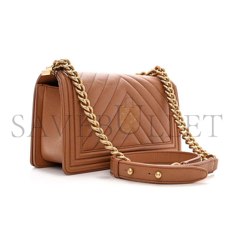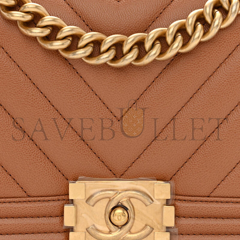 シャネル キャビア シェブロン ミディアム キルティング ボーイ フラップ ブラウン A67086 (25*15*6cm)