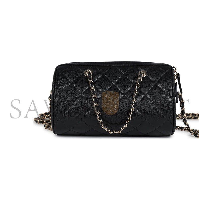 シャネル ミニ タイムレス クラシック バレルバッグ チェーン付き ブラック シャイニーキャビア ライトゴールド金具 AS0932 (18×13×10cm)