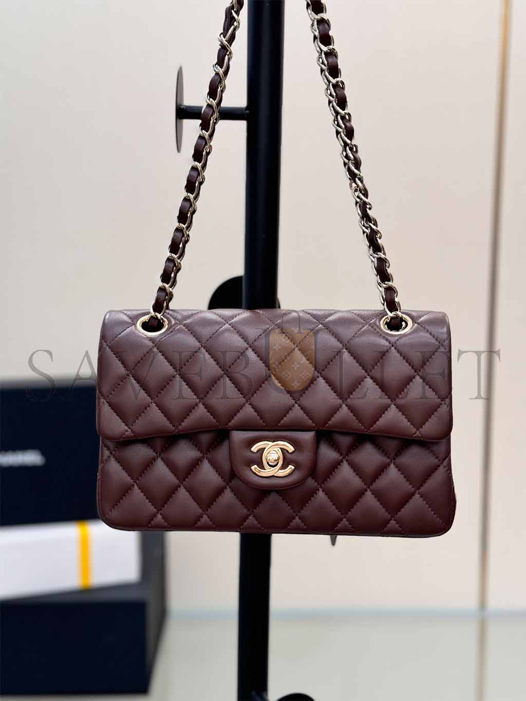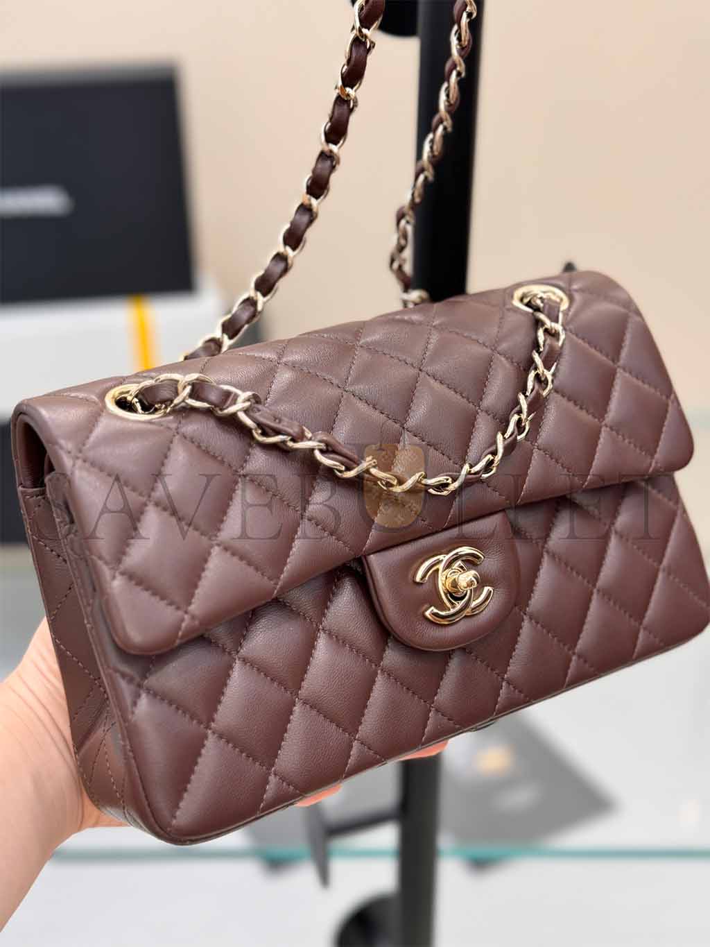 シャネル クラシック ダブルフラップバッグ ダークブラウン ラムスキン ライトゴールド金具 AS1117 (23×14.5×6cm)