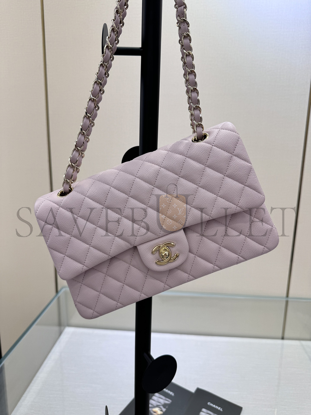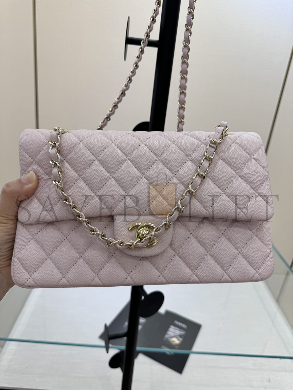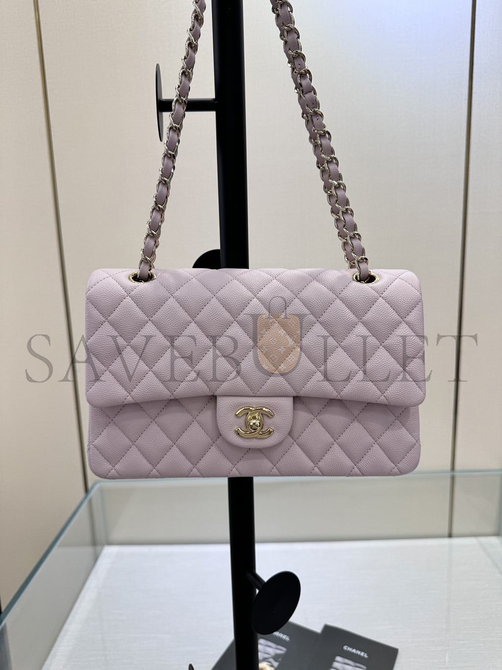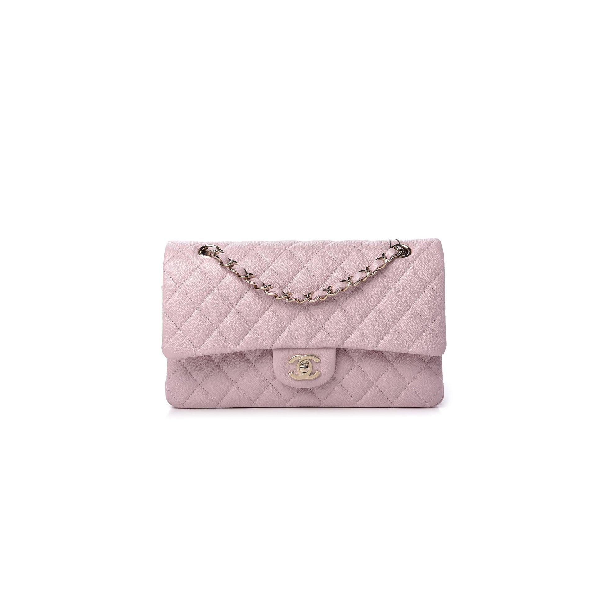 シャネル キャビア キルティング ミディアム ダブルフラップ ライトピンク (25.5×14×6.5cm)