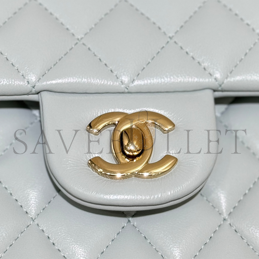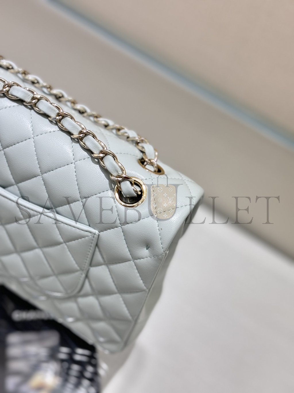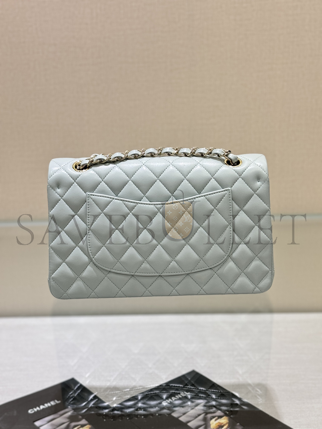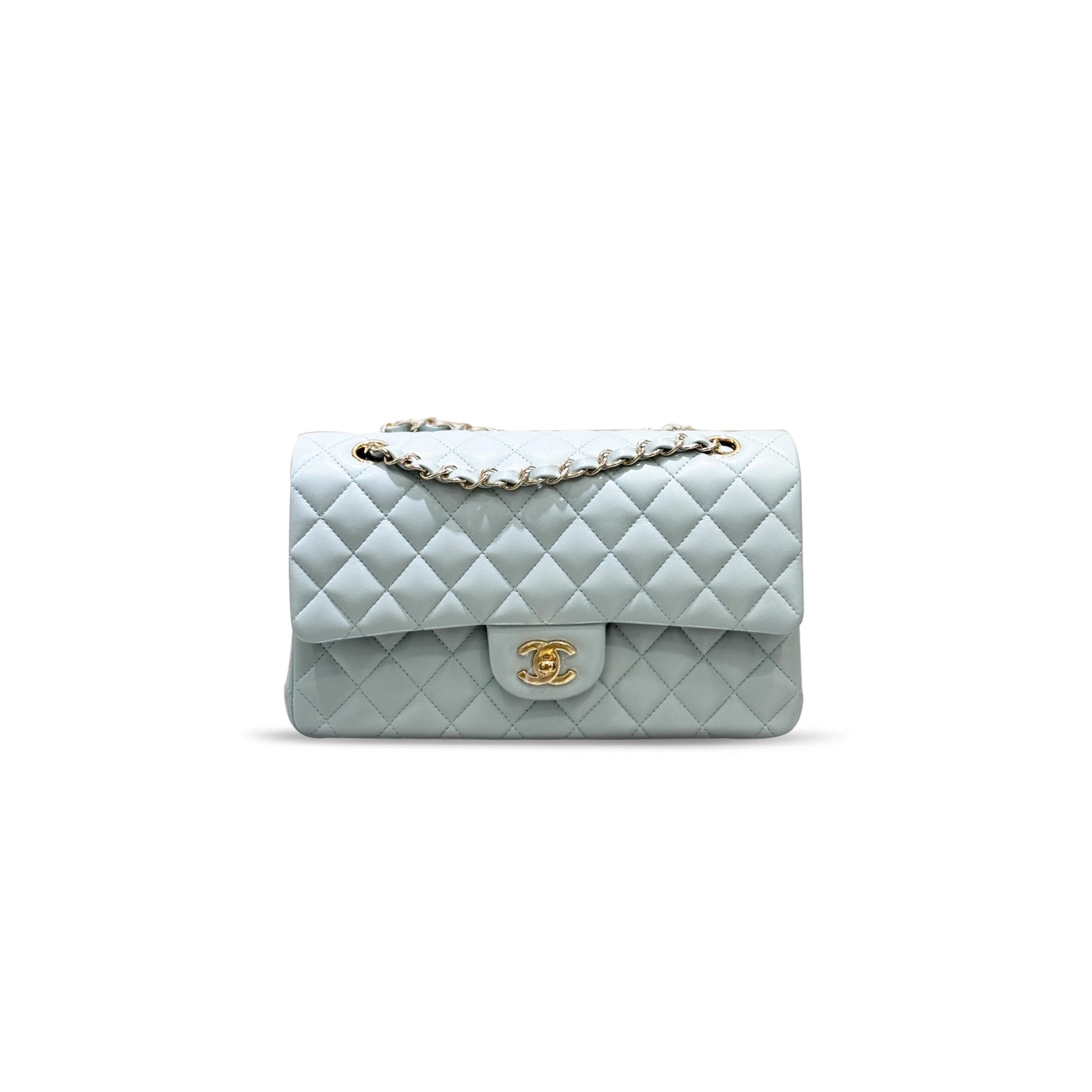 シャネル ライトブルー ラムスキン キルティング クラシック フラップ ミディアム ゴールド金具 (25.5×15×7cm)