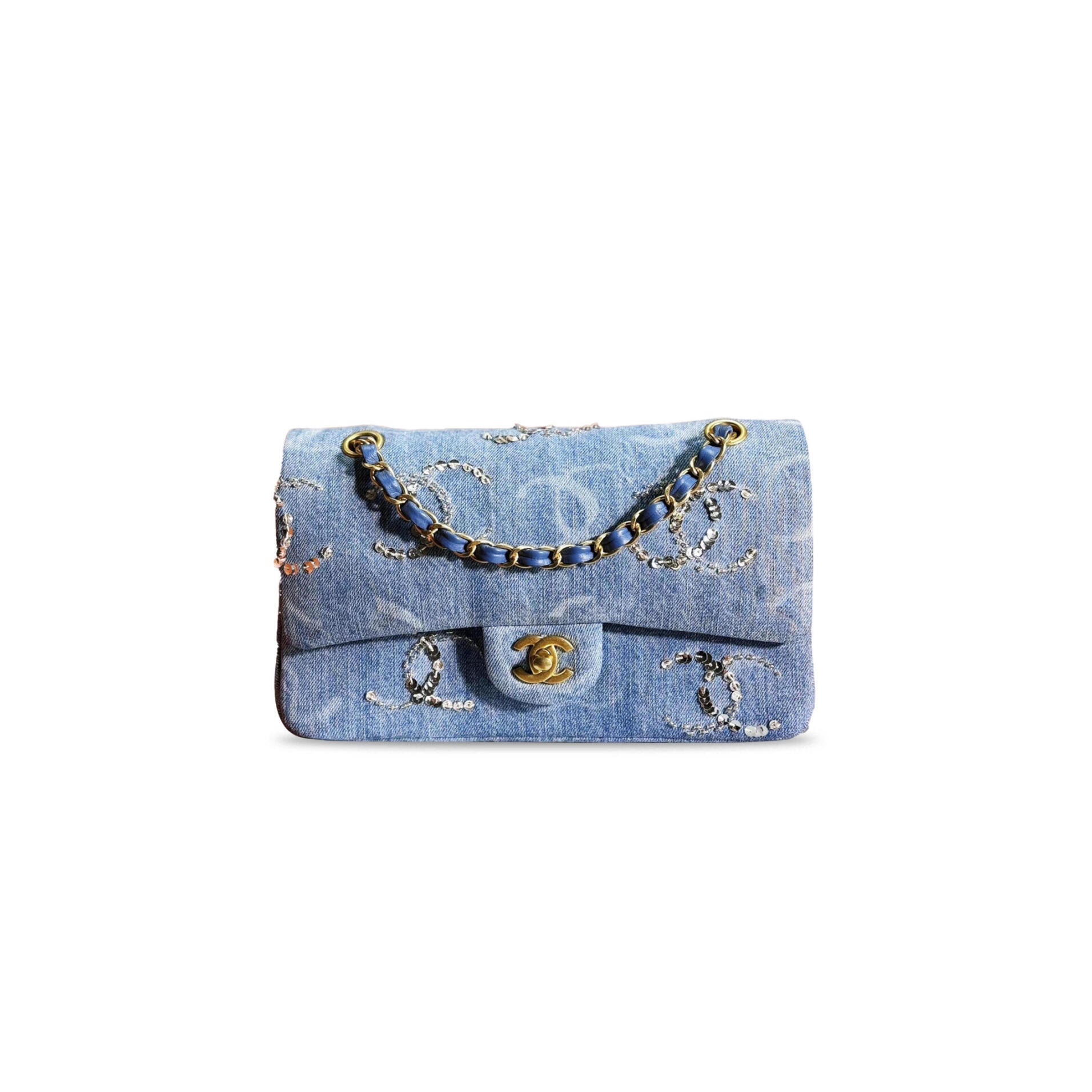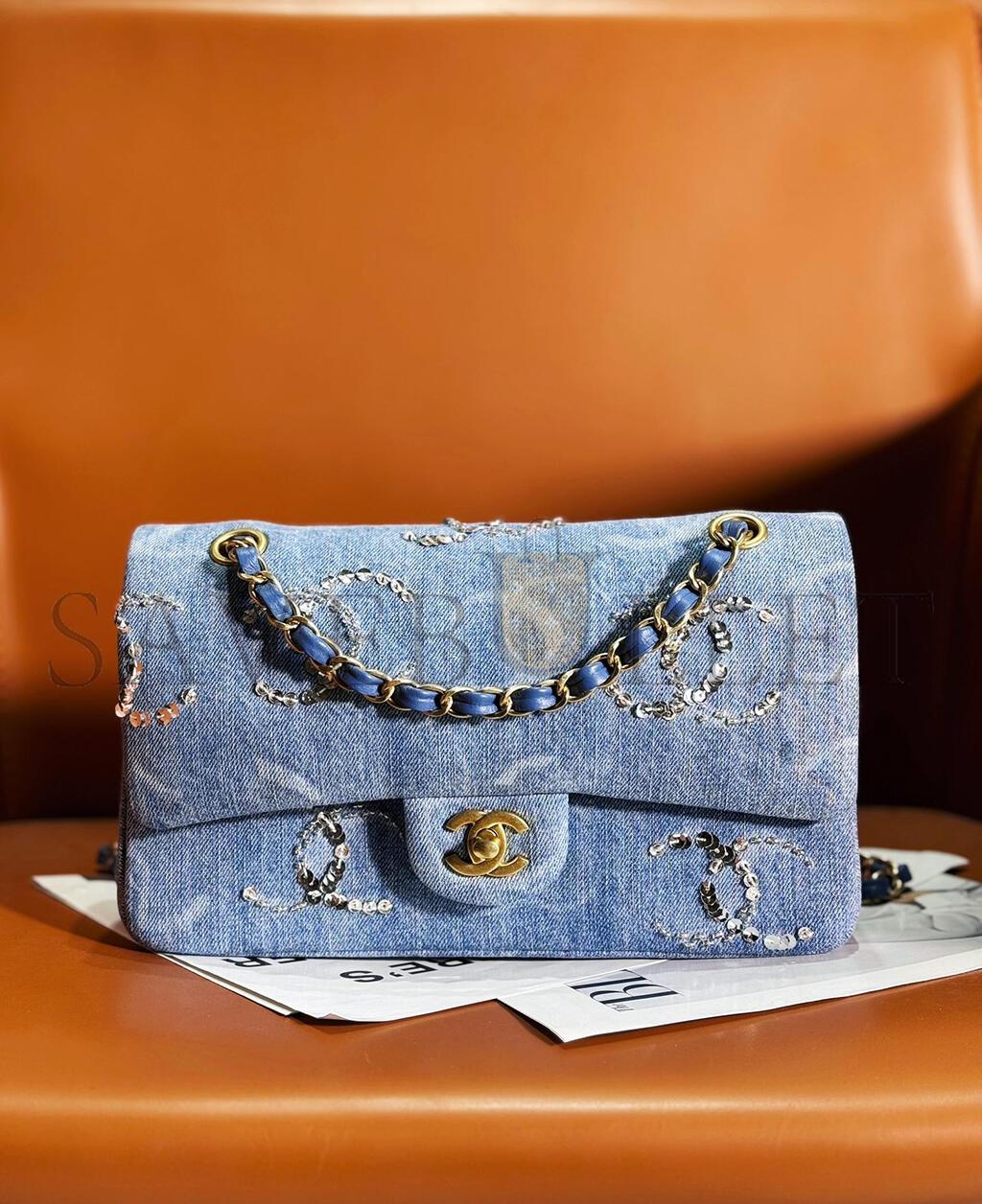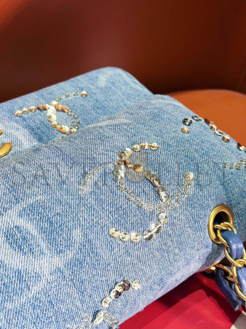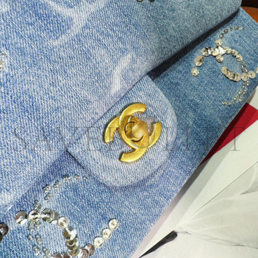 シャネル ミディアム デニム スパンコール CC クラシック フラップ A01113 (25.5×15.5×6.5cm)