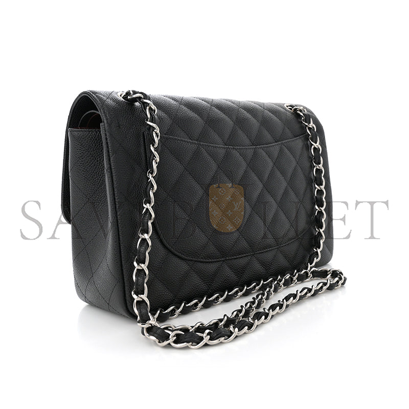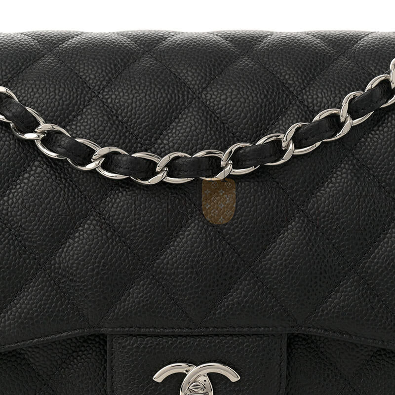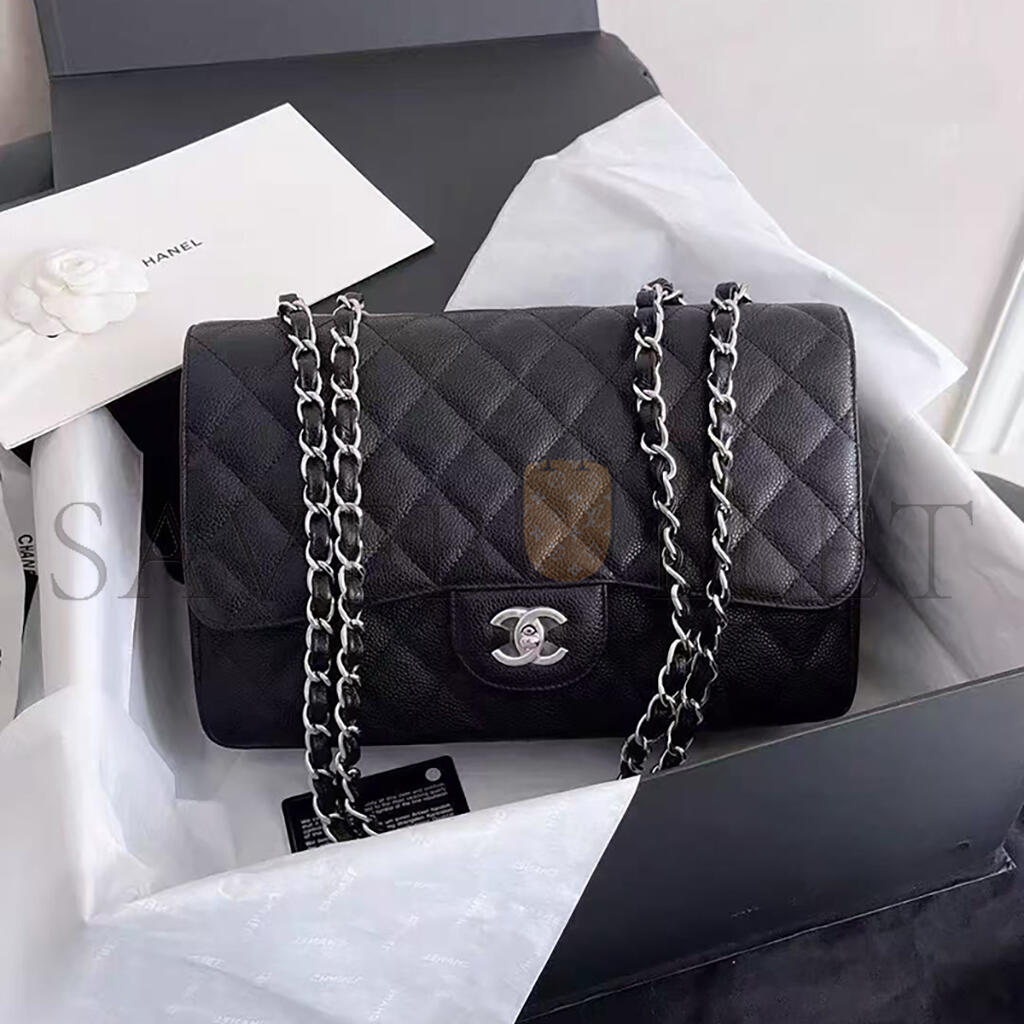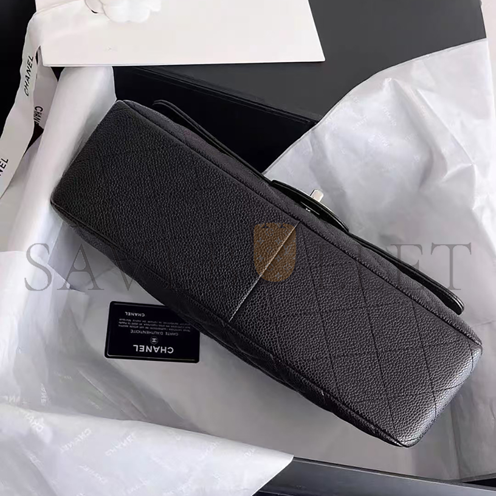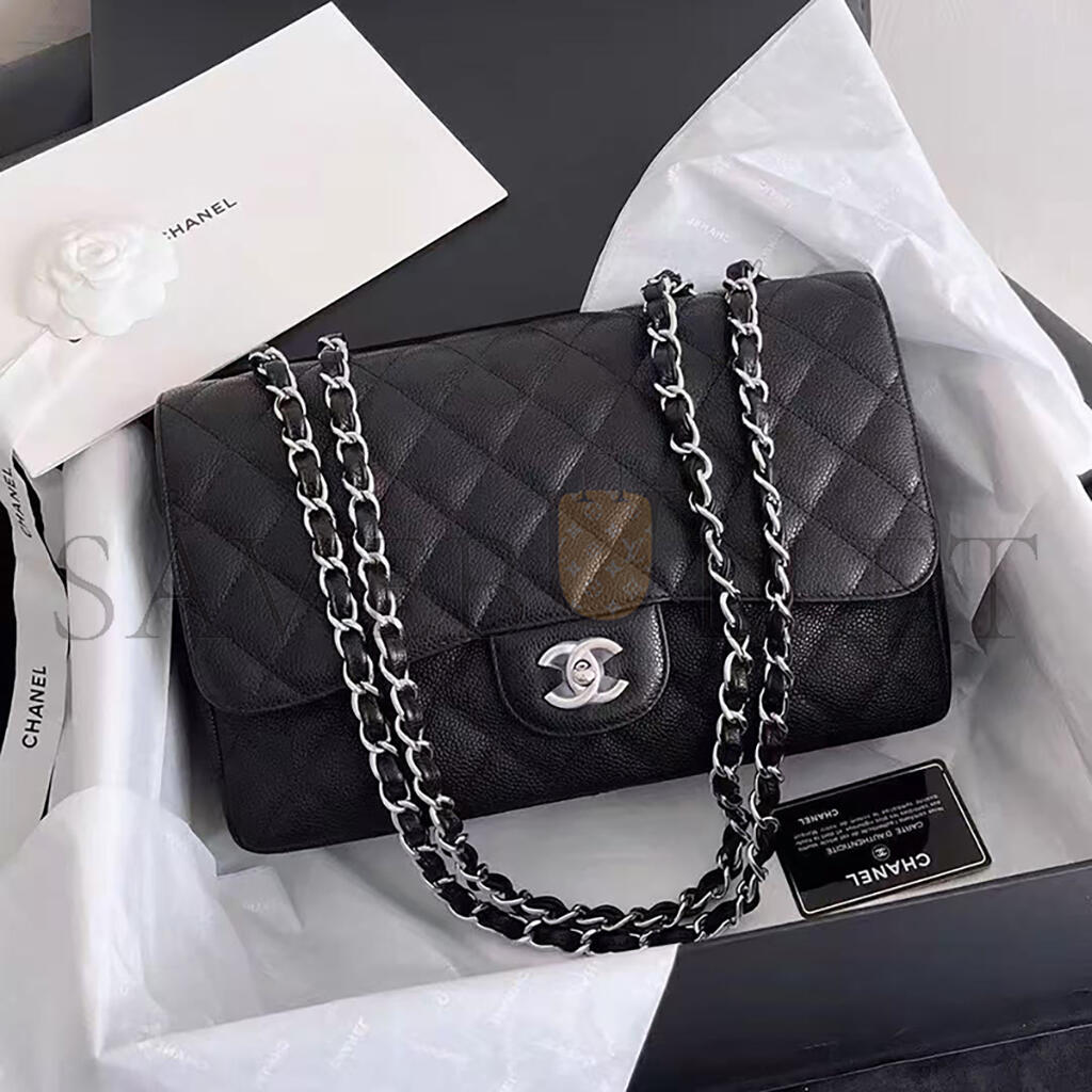 シャネル キャビア キルティング ジャンボ ダブルフラップ ブラック 1633607 (30*20*9cm)