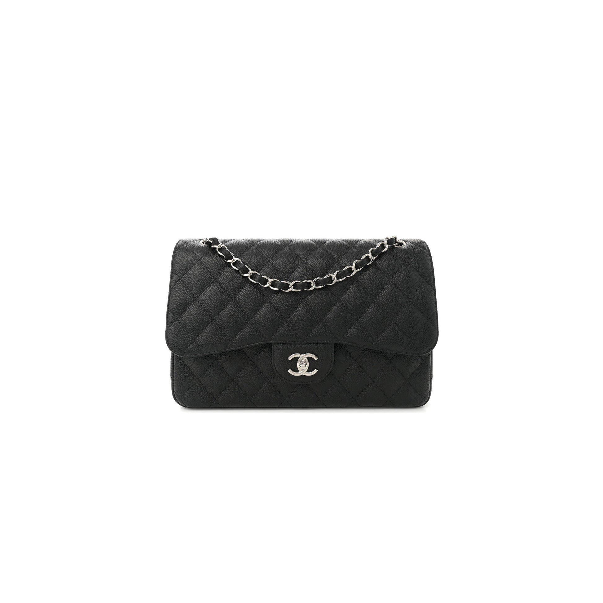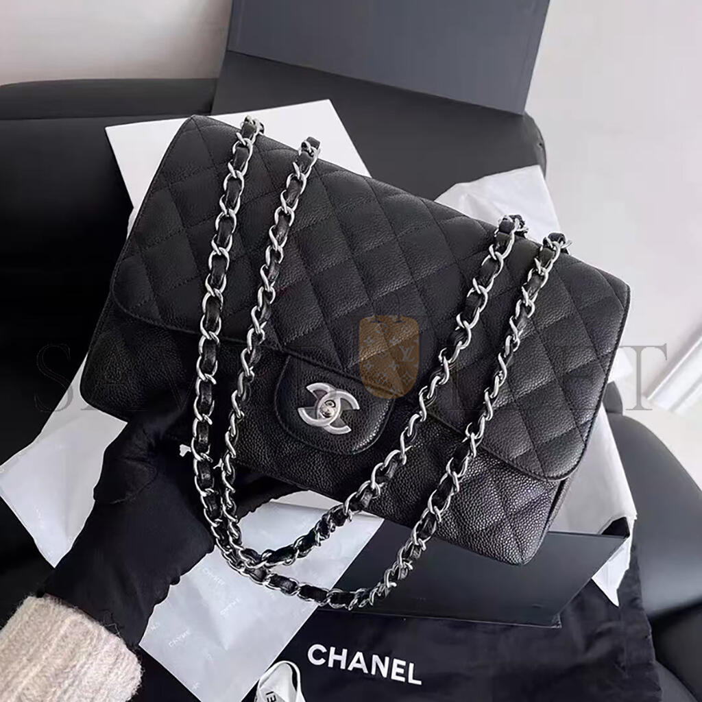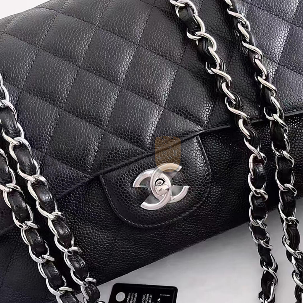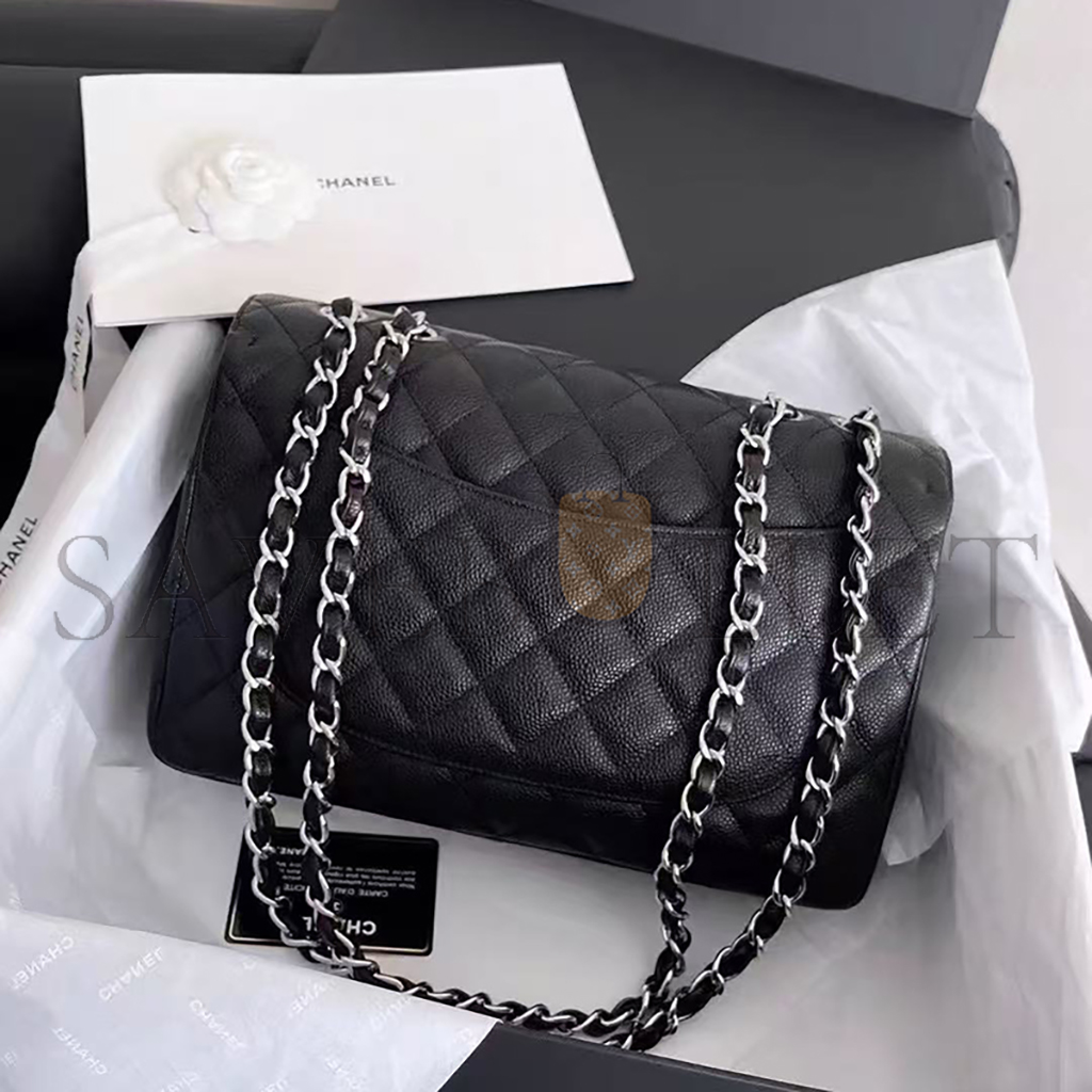 シャネル キャビア キルティング ジャンボ ダブルフラップ ブラック 1633607 (30*20*9cm)