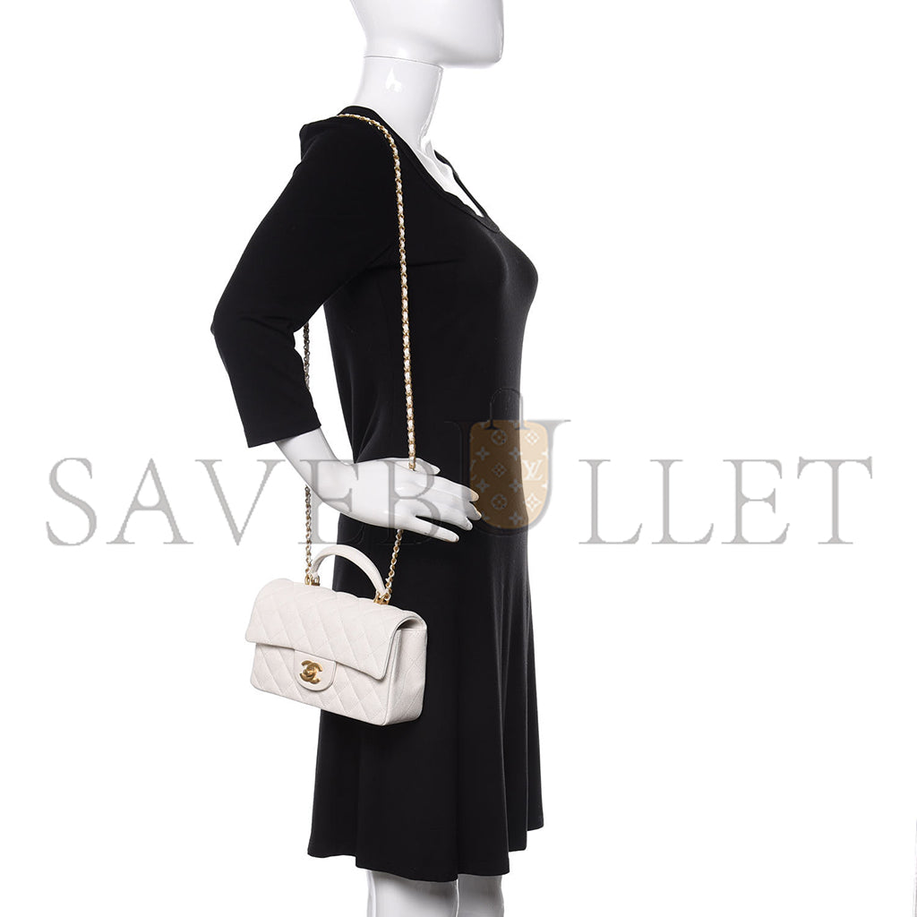シャネル マスター キャビア キルティング ミニ トップハンドル レクタンギュラー フラップ ホワイト (20*13*9cm)