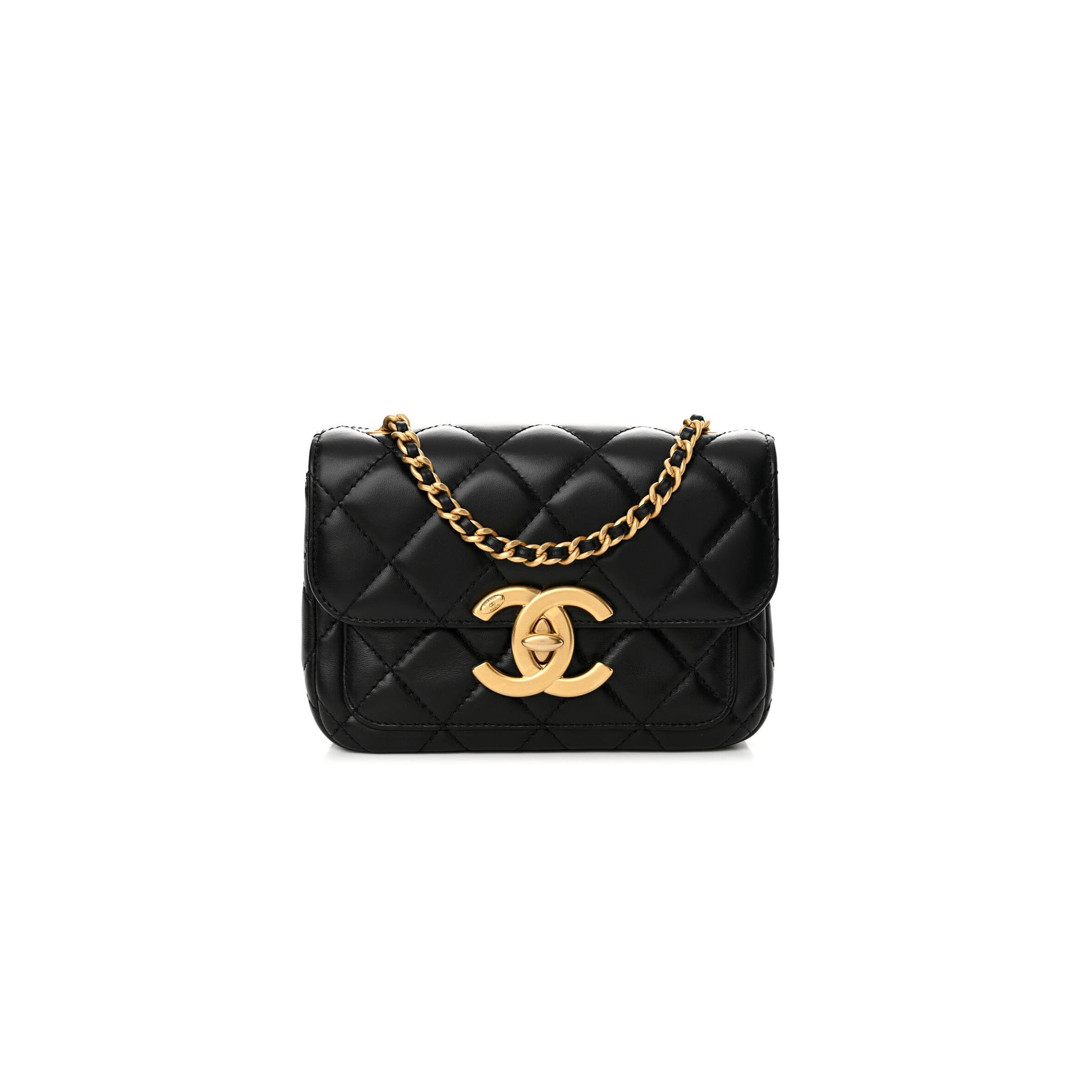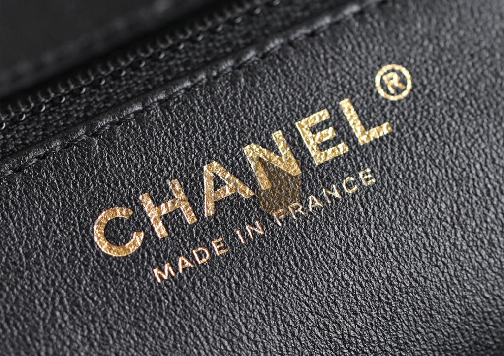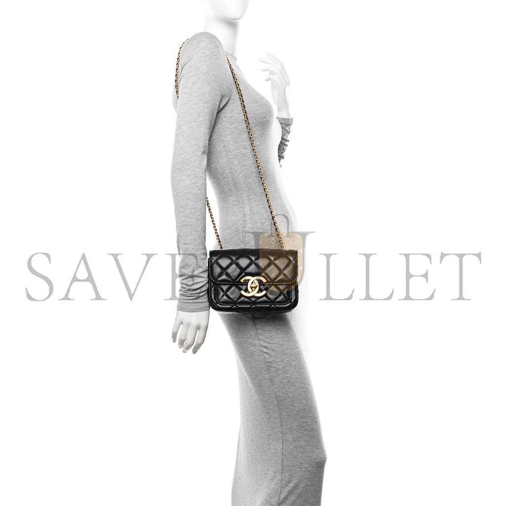 シャネル マスターミニ オーバーサイズ CCフラップバッグ シャイニーキルティングラムスキン ブラック AS5026 (19×13.5×7cm)