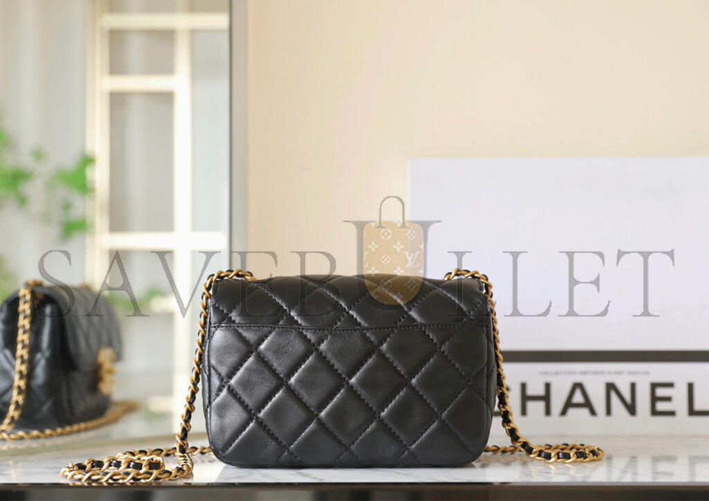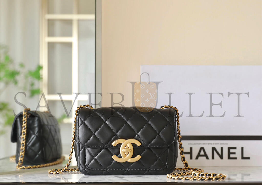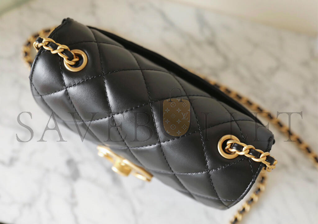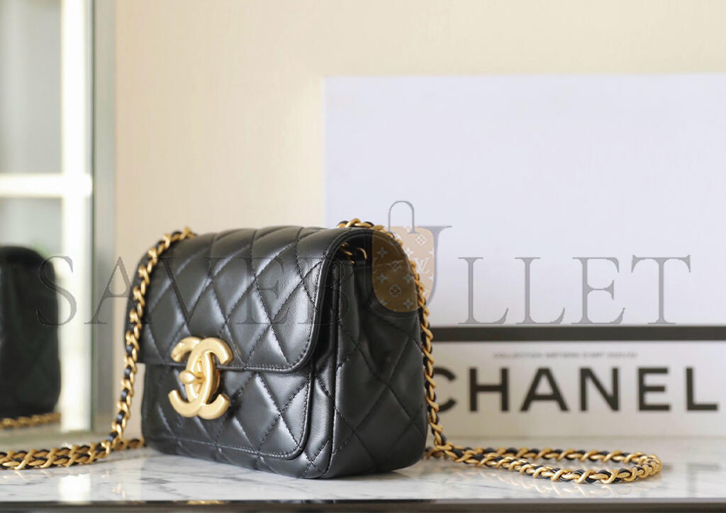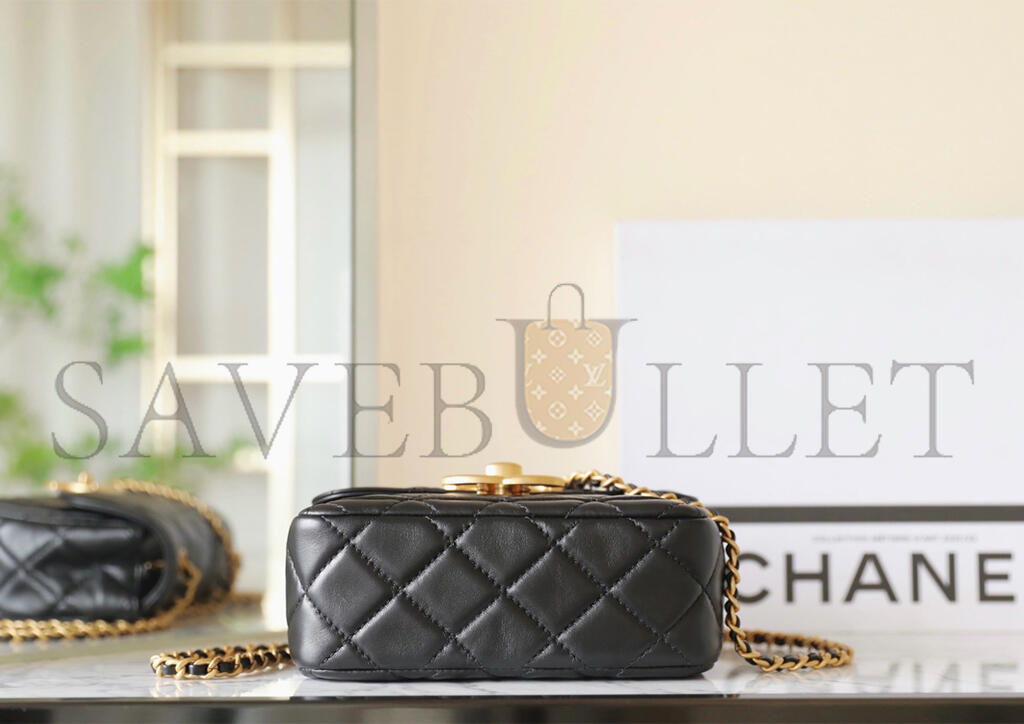 シャネル マスターミニ オーバーサイズ CCフラップバッグ シャイニーキルティングラムスキン ブラック AS5026 (19×13.5×7cm)