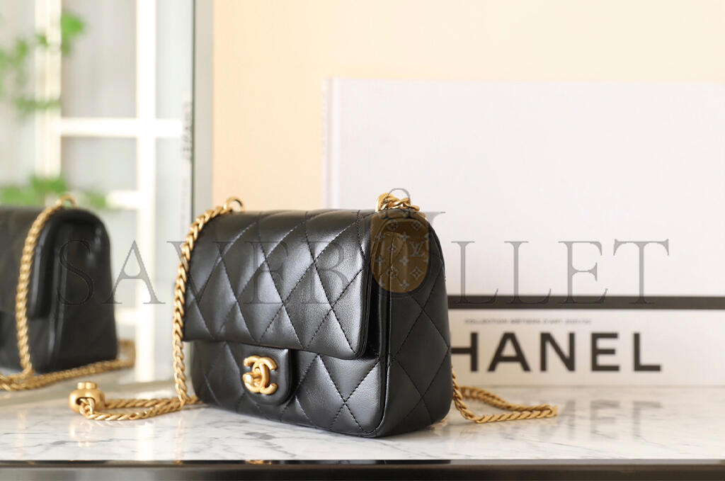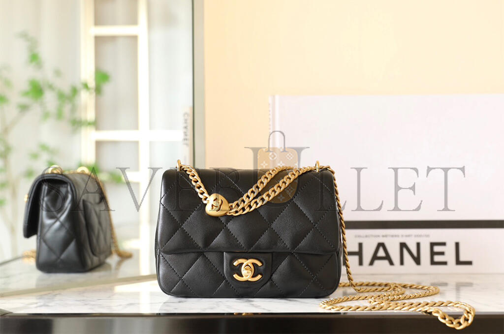シャネル マスター シープスキン ハート アジャスタブル バックル スクエア ファット フラップ バッグ (20*14*8cm)