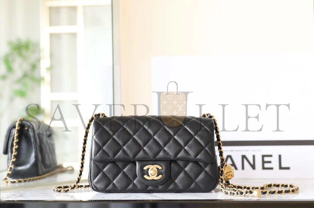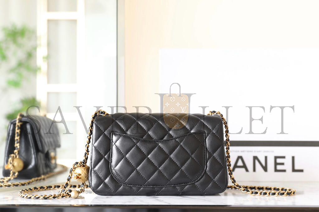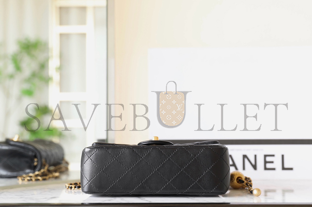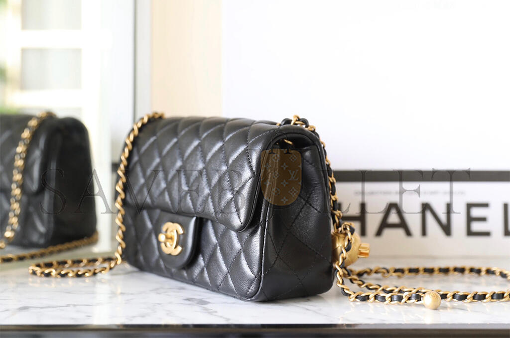 シャネル マスターゴールド ボールチェーン フラップバッグ ラージミニ ブラック (20*13*7cm)