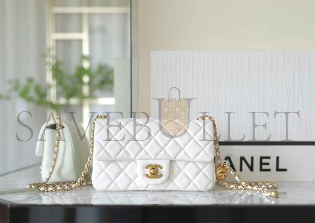 シャネル マスターゴールド ボールフラップバッグ ラージミニ ホワイト (20*13*7cm)