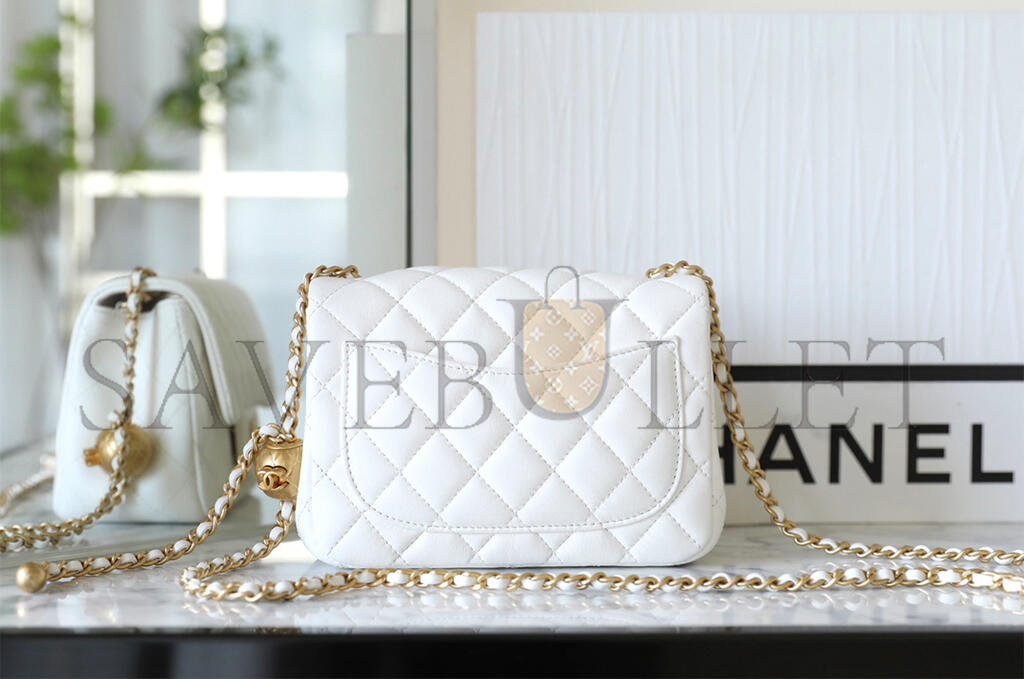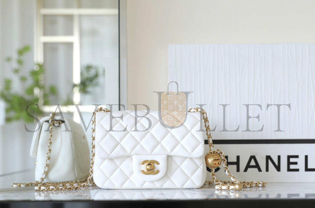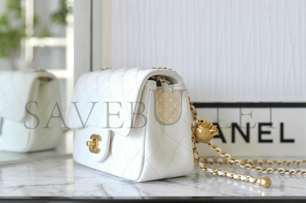 シャネル マスター ゴールデンボール フラップバッグ ファッティ スクエア ホワイト (18×13×7cm)