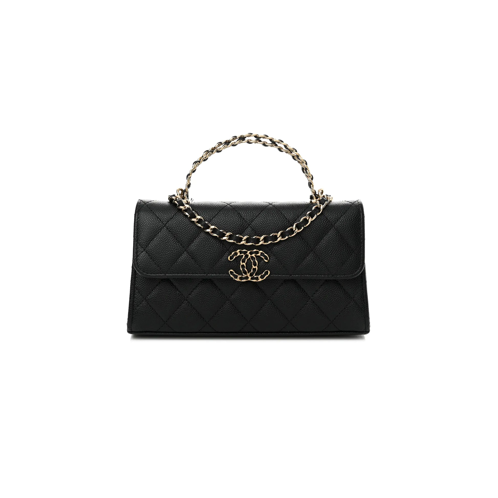 シャネル マスター キャビア キルティングチェーン トップハンドル チェーン付き ブラック (18×10×4cm)