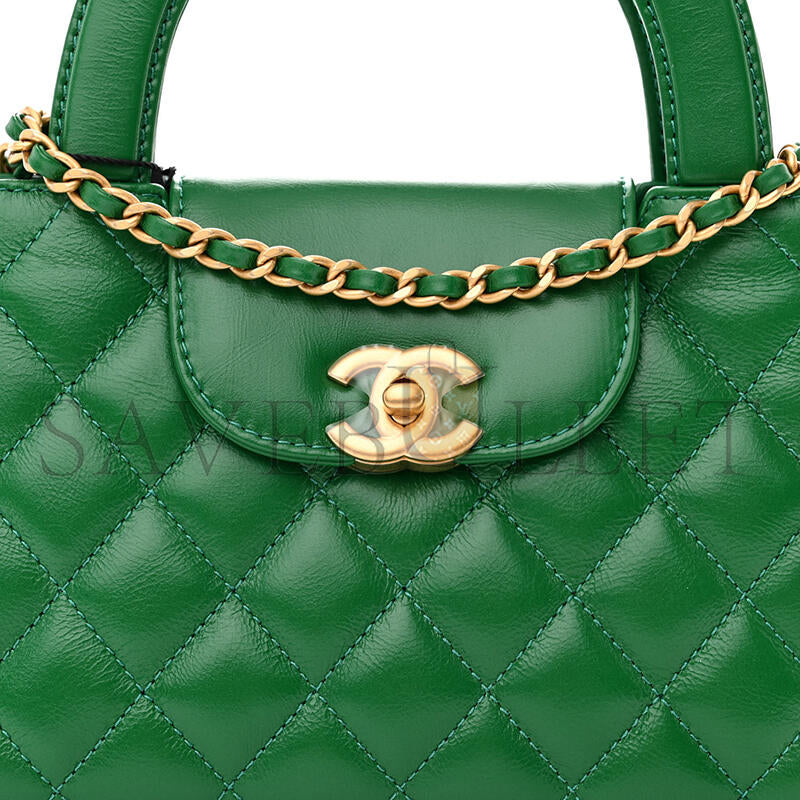 シャネル マスターシャイニーカーフスキン キルティング ナノケリー ショッパー グリーン AS4416 (19*13*7cm)