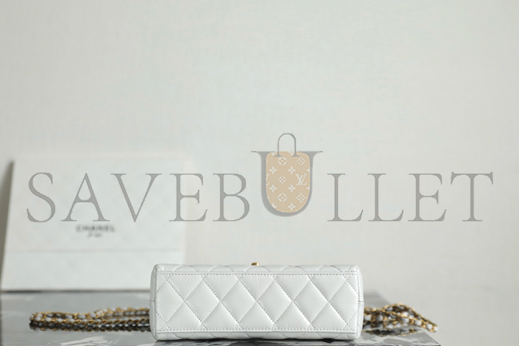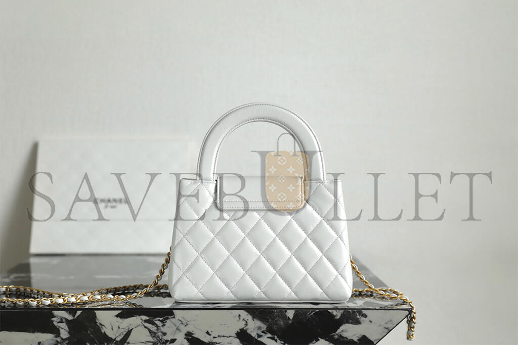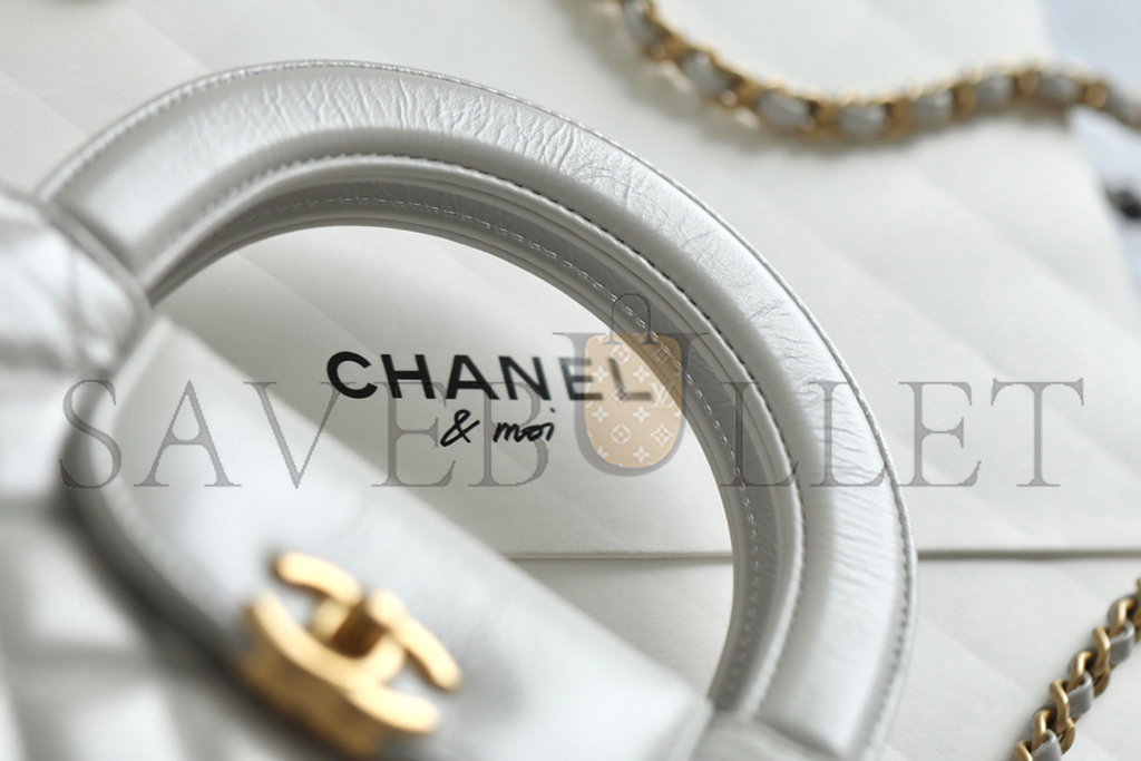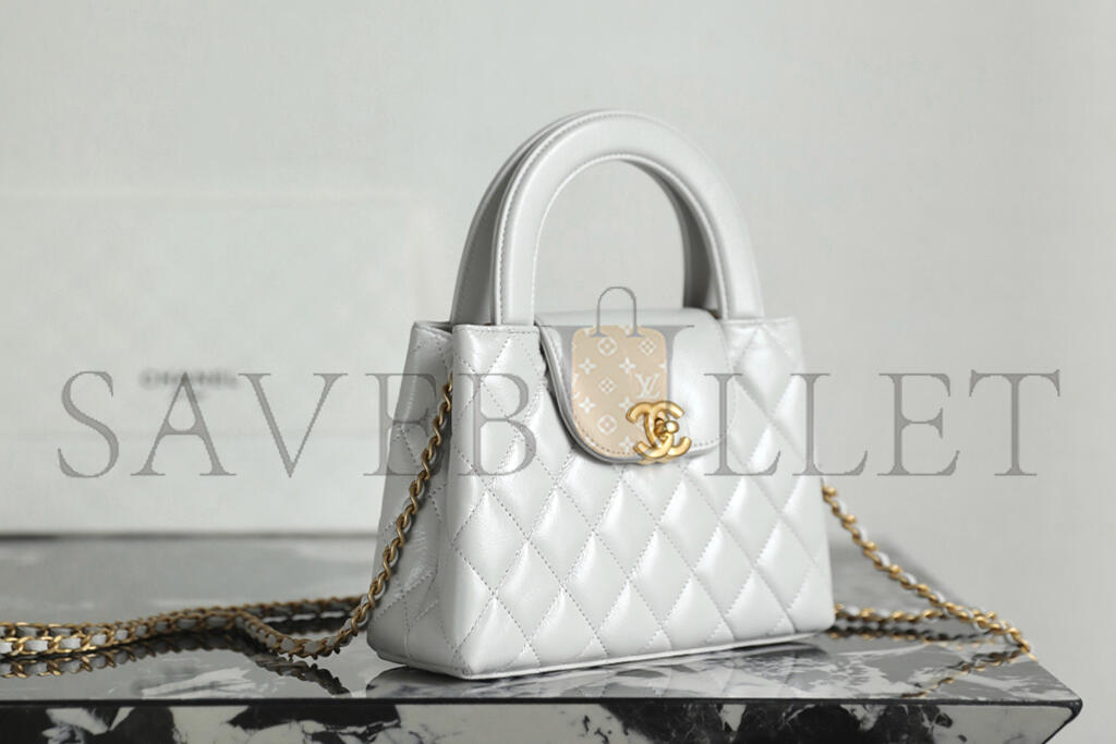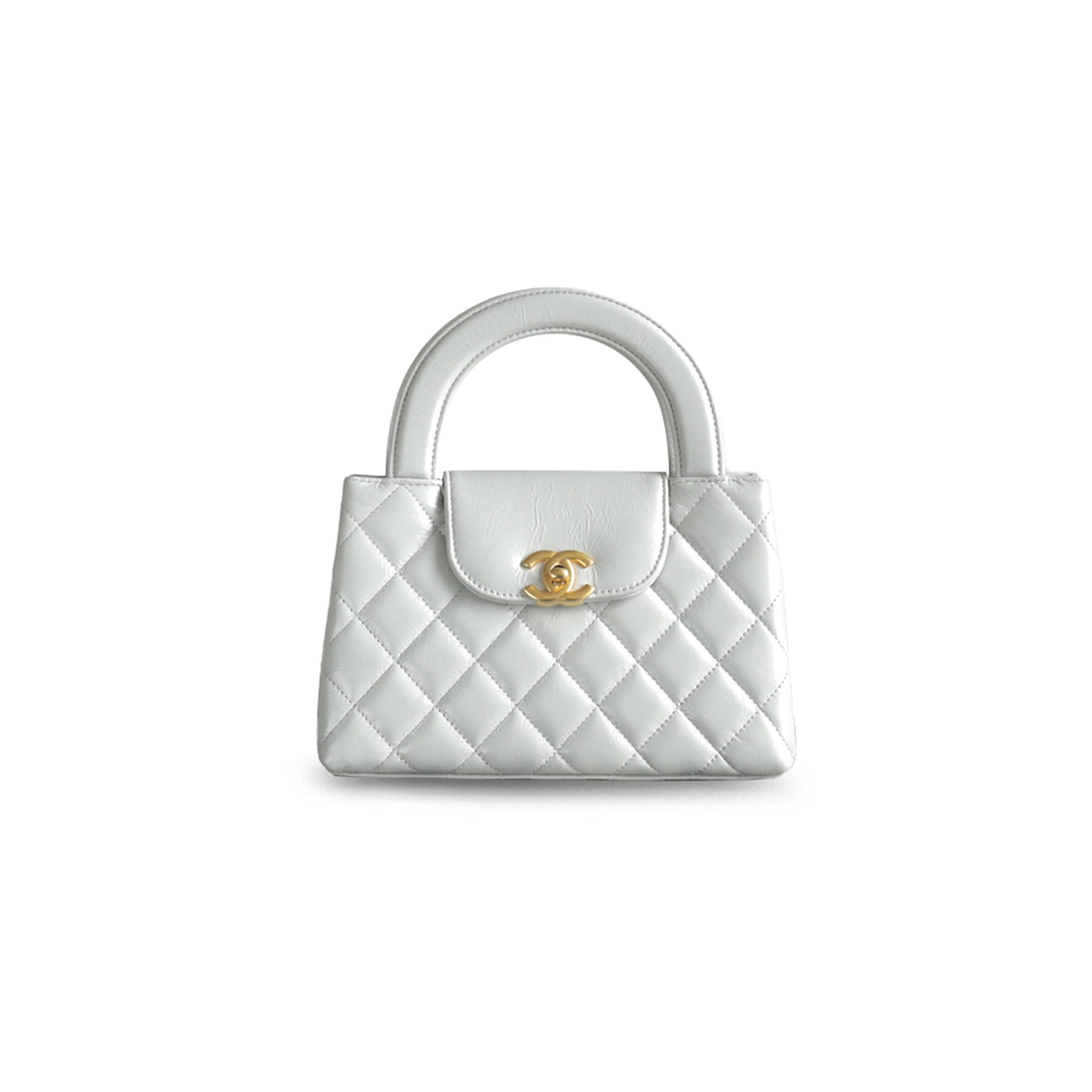 シャネル マスターケリー ショッパー ミルクグレー グロッシー ディストレストカーフスキン ブラッシュドゴールド金具 AS4416 (19*13*7cm)