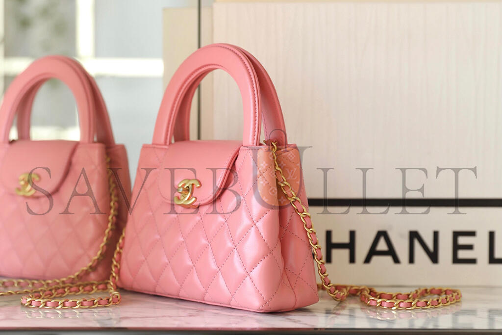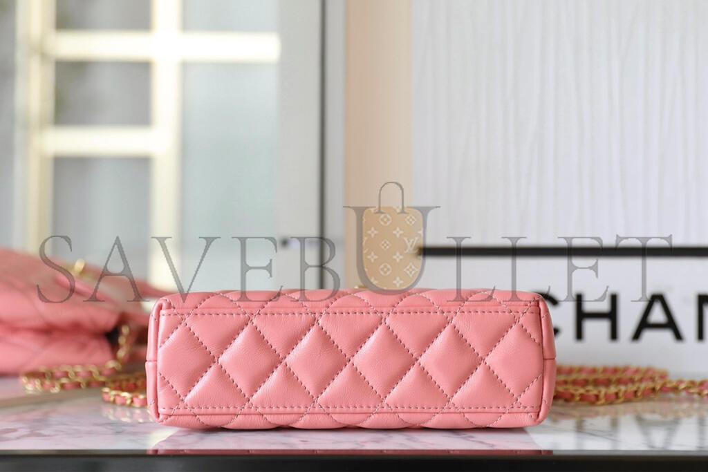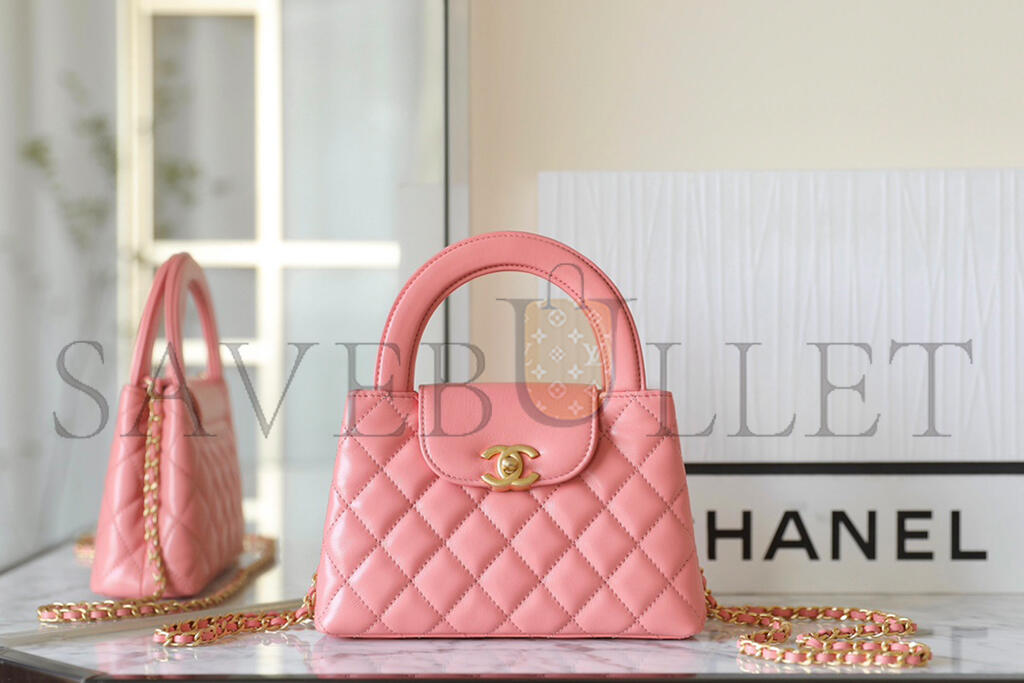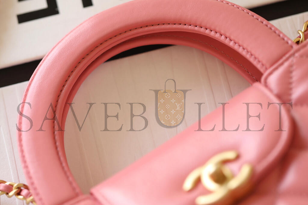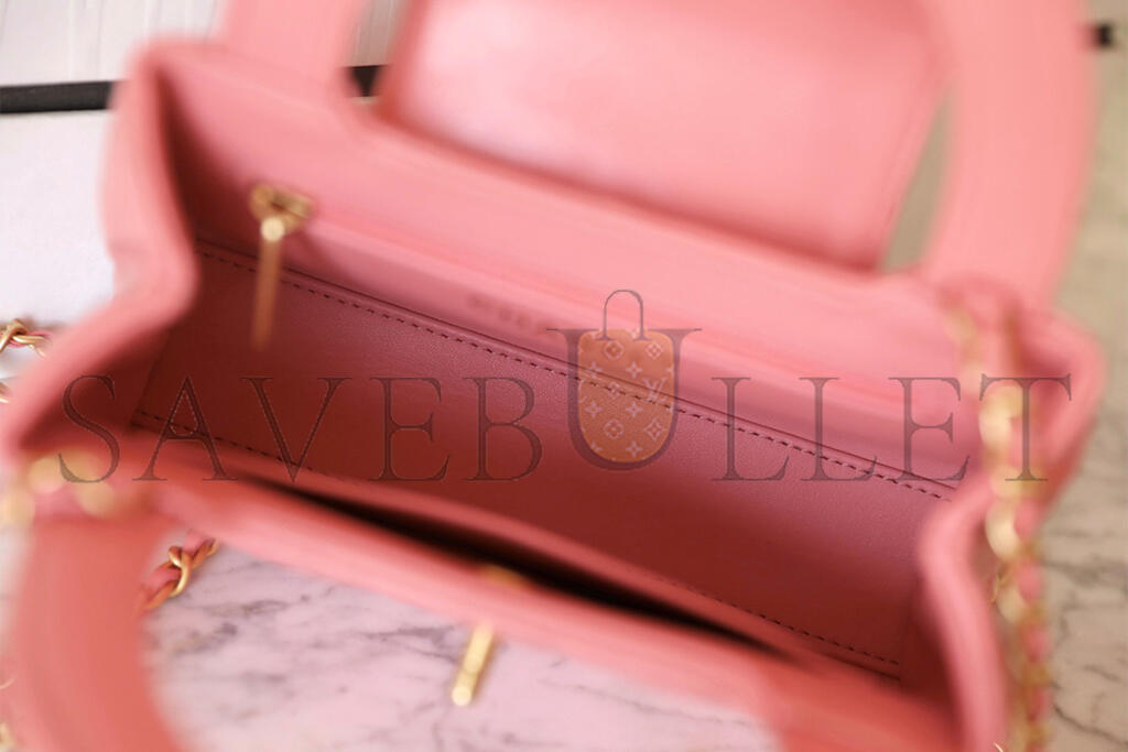 シャネル マスターピンク キルティングカーフスキン ミニケリーショッパー ブラッシュドゴールド金具 AS4416 (19*13*7cm)
