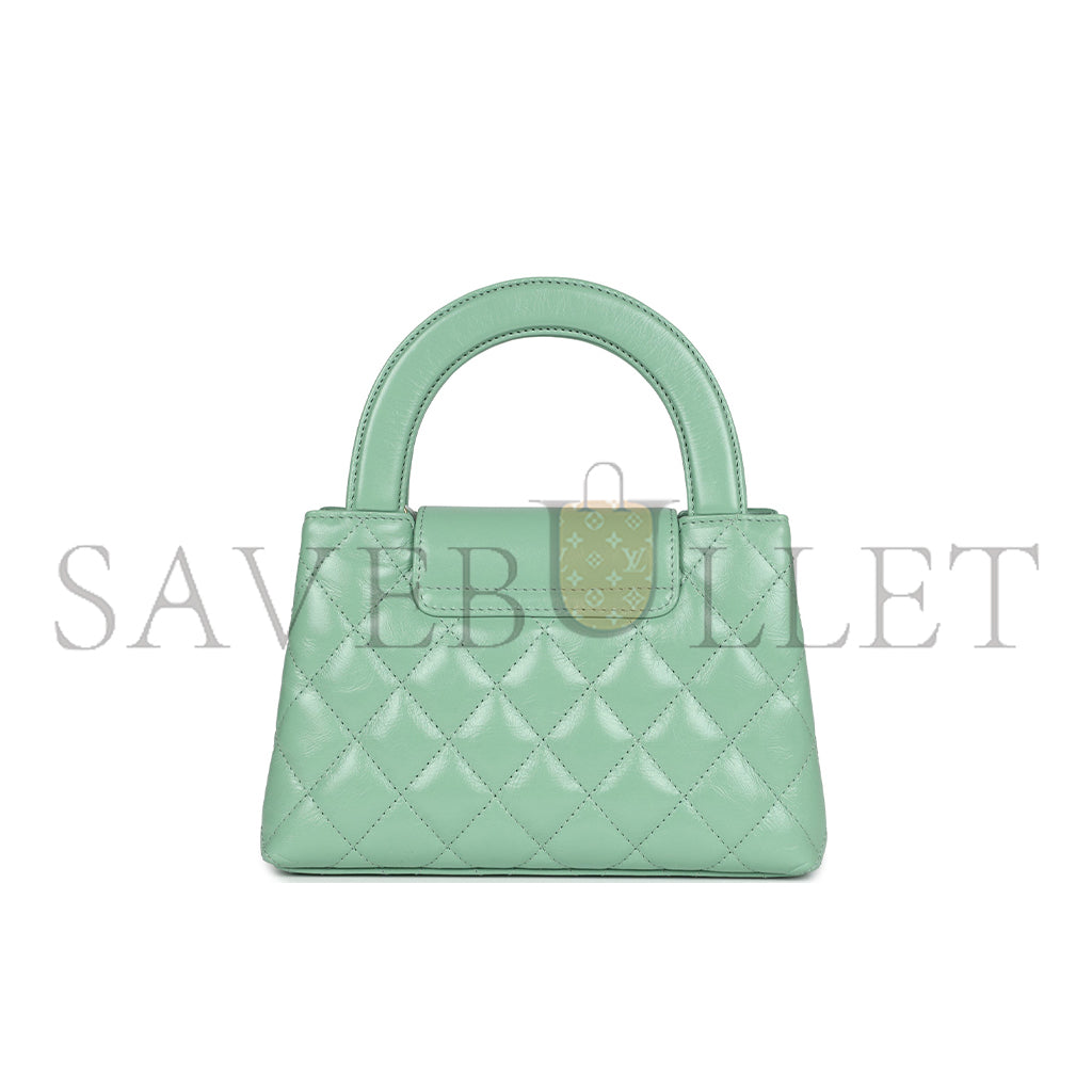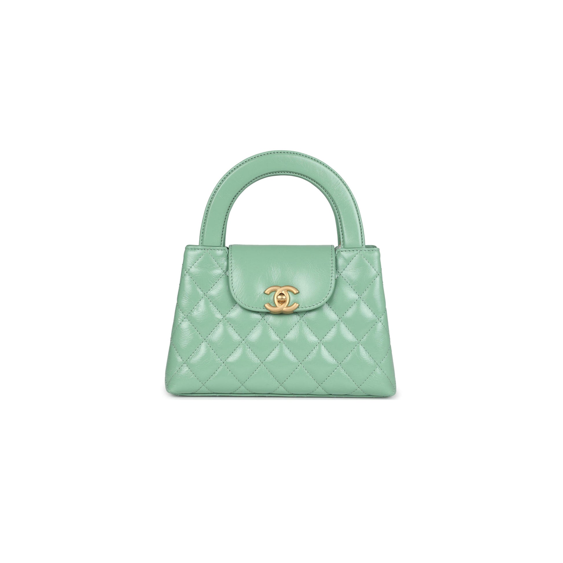 シャネル マスターケリー ショッパー ライトグリーン シャイニーカーフスキン ブラッシュゴールド金具 (19×13×7cm)