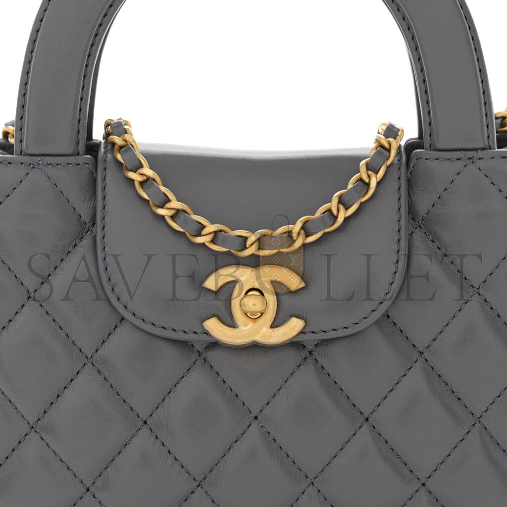 シャネル マスターケリーバッグ キルティング グレー シャイニーカーフスキン ゴールド金具 (19×13×7cm)
