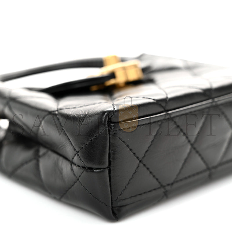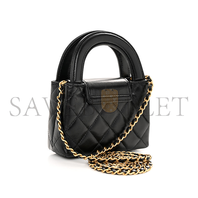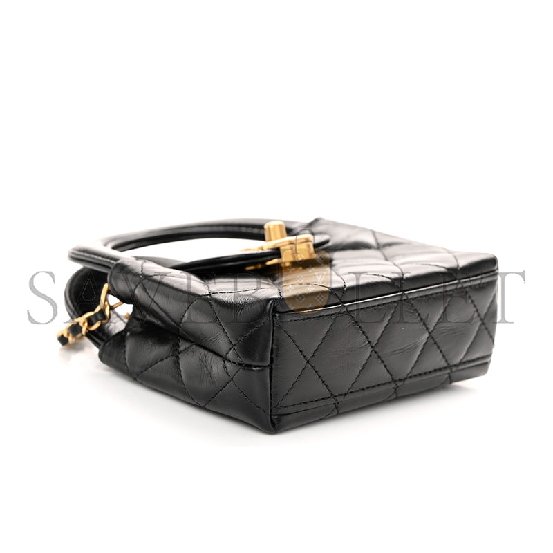 シャネル マスターシャイニーエイジドカーフスキン キルティングケリー ミニナノショッパー AP3435 (12.5×8×4cm)