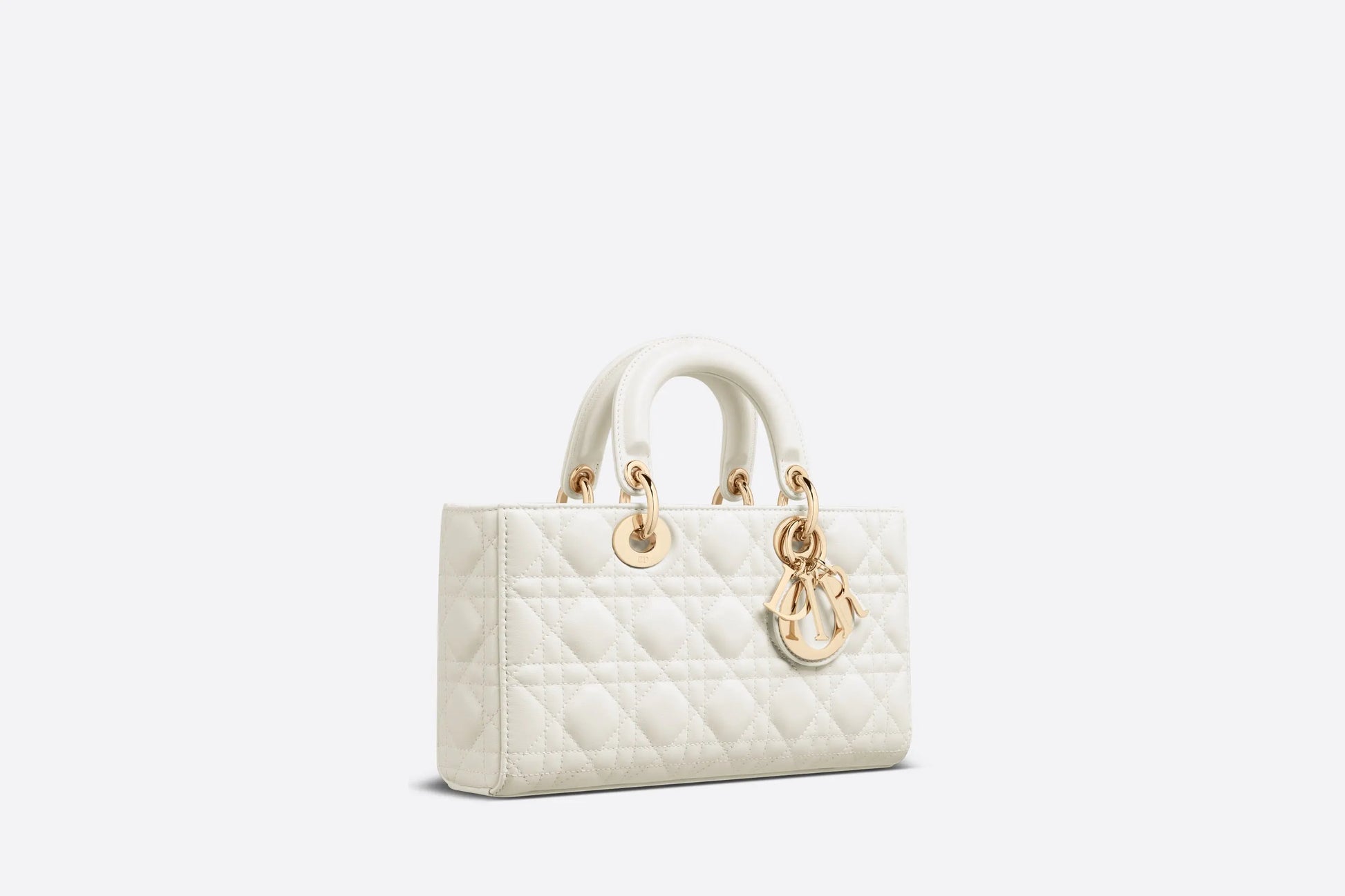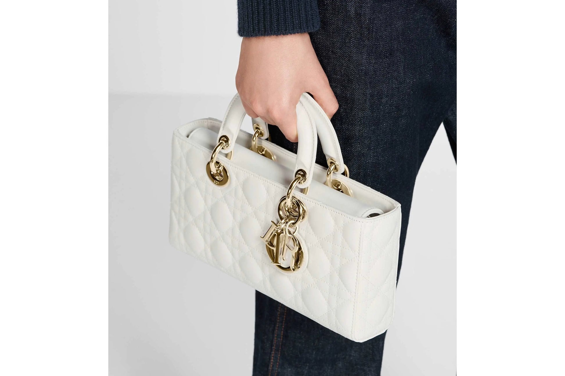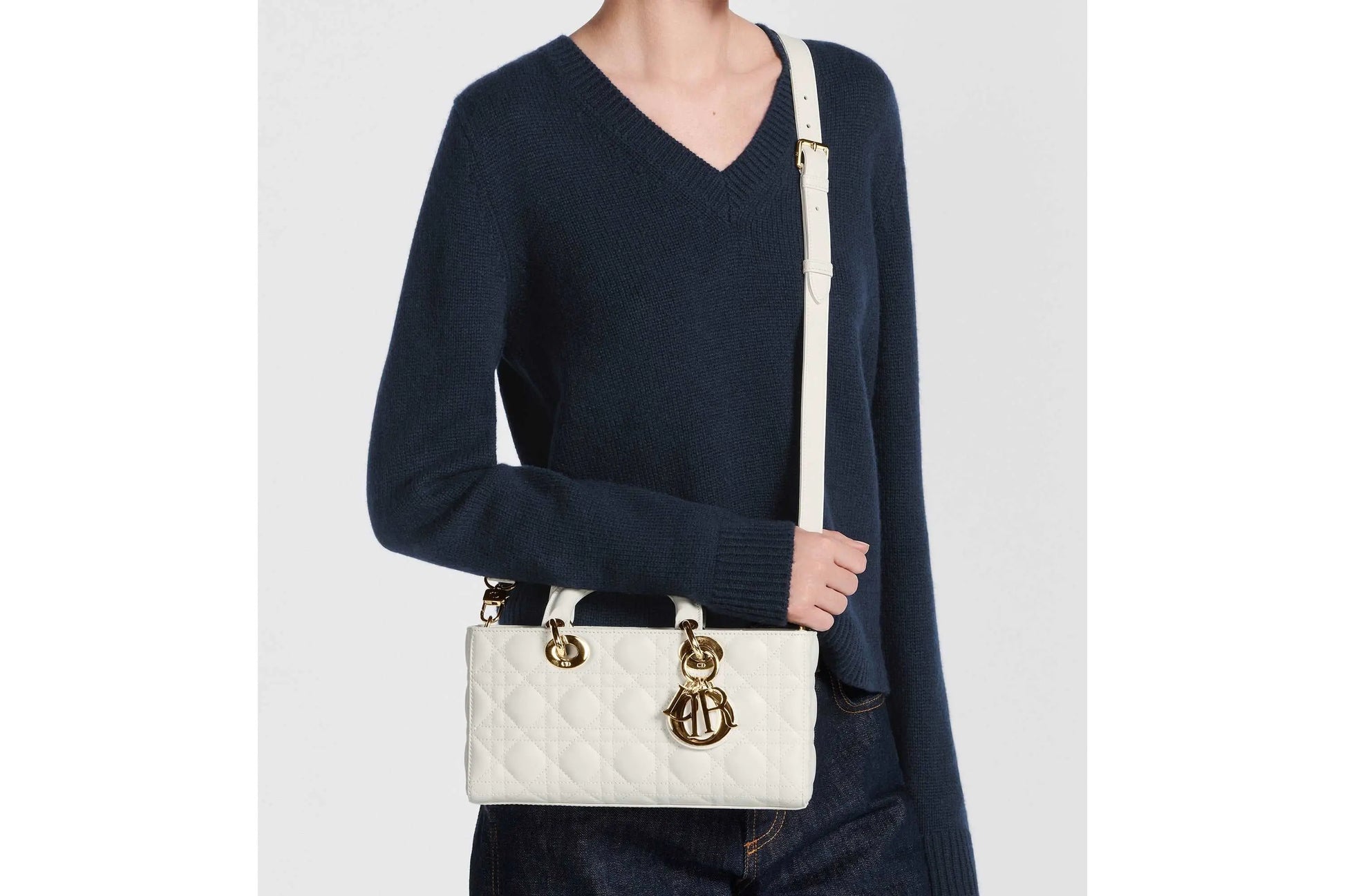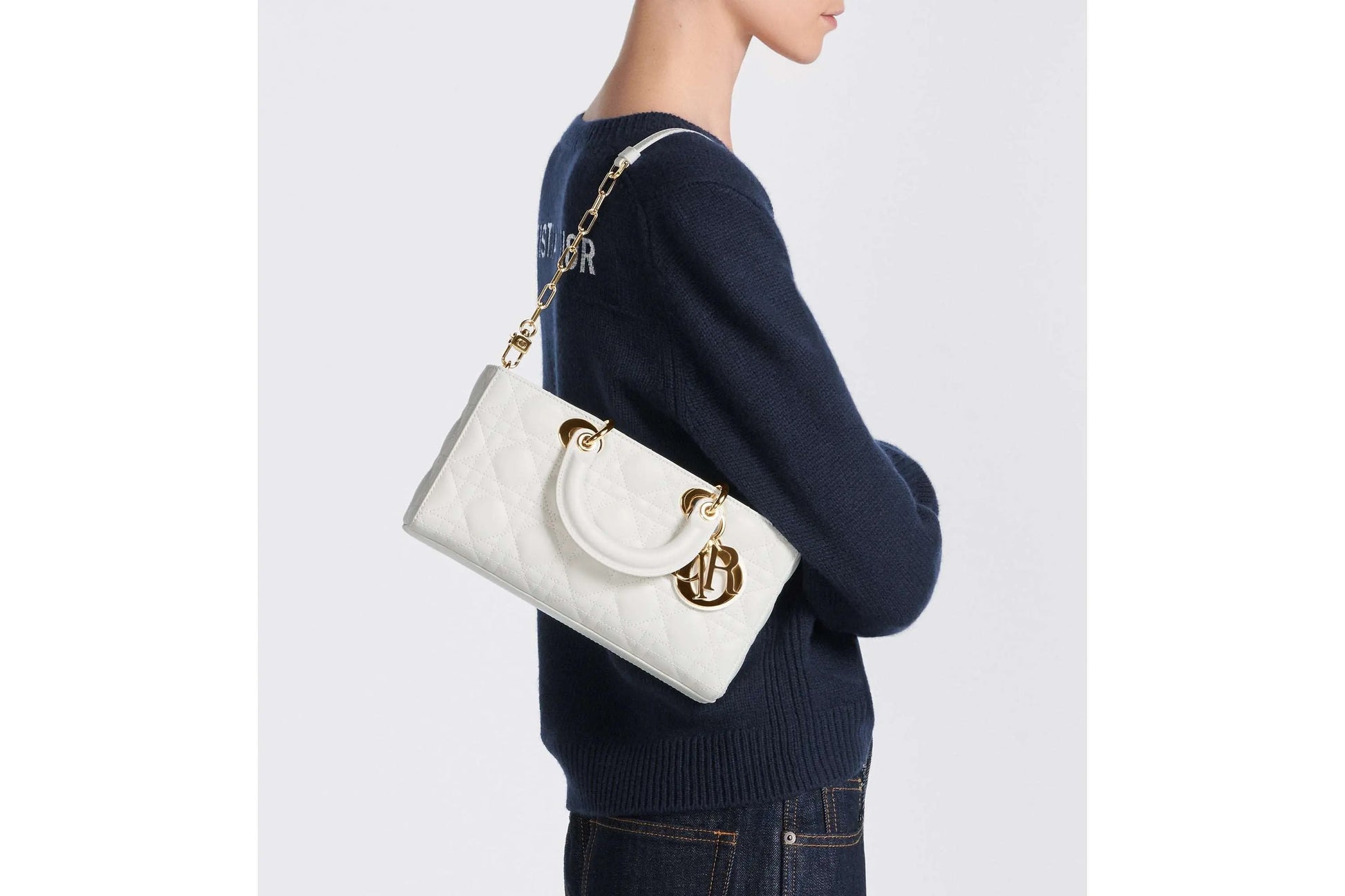 メゾンのビジョンであるエレガンスと美を体現した「レディ D-ジョイ」バッグ。スタイリッシュで洗練されたタイムレスなスタイルは、「レディ ディオール」ラインらしいすっきりとしたデザインが魅力です。「カナージュ」ステッチを施した、ラテカラーのラムスキンで仕立てました。ペールゴールドトーンのメタル製D.I.O.R.チャームがシルエットを引き立てます。取り外しが可能なチェーン ショルダーストラップと、長さの調節と取り外しが可能なレザー ショルダーストラップが1本ずつ付属。ハンドバッグとしてはもちろん、クロスボディバッグとしてもお楽しみいただけ、普段使いに最適なミディアムサイズのモデルです。
