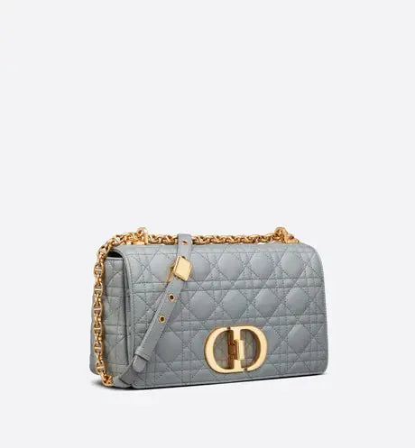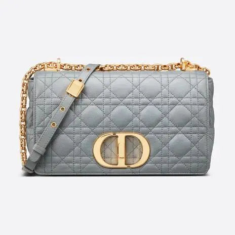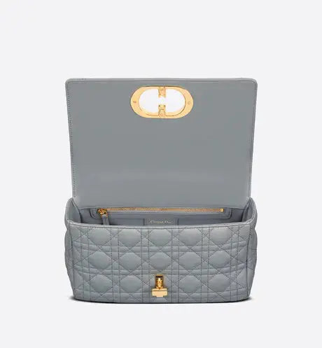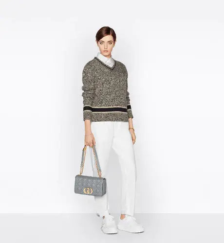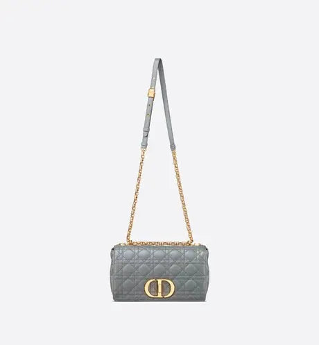 ディオール カロ バッグは、モダンさとタイムレスなエレガンスを融合させたバッグです。ミディアムサイズのシルエットは、グレーのカーフスキンにカナージュステッチを施して仕立てられています。しなやかなこのバッグのフラップには、クリスチャン・ディオールの香水ボトルのシールからインスピレーションを得た、アンティークゴールド仕上げのメタル製「CD」ツイストクラスプがあしらわれています。「CD」のシグネチャーリンクが付いた取り外し可能なチェーンショルダーストラップは、手持ちでも肩掛けでもお使いいただけます。また、デイタイムやイブニングドレスに合わせて、メゾンならではの幅広の刺繍ストラップに交換することも可能です。