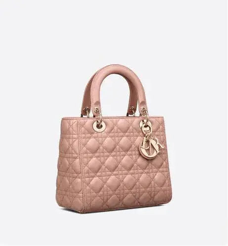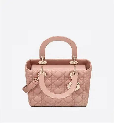 今シーズンの「レディ ディオール」バッグは、ディオールのエレガンスと美しさのビジョンを体現しています。洗練されたクリエイションは、時代を超越しながらも、時代を超えて愛される魅力を放ちます。ブラッシュラムスキンにカナージュステッチを施し、キルティングの質感が際立つデザイン。淡いゴールド仕上げのメタル製「DIOR」チャームがシルエットをさらに引き立てます。ミディアムサイズは、取り外し可能な細身のレザーショルダーストラップが付属し、手持ち、肩掛け、クロスボディバッグとしてお使いいただけます。