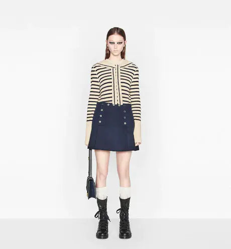 メゾンの象徴的な住所にインスパイアされた「30 モンテーニュ」ラインは、メゾンの象徴的なコードを体現するエッセンシャルアイテムを揃えています。ブルーのスエードカーフスキンを使用したハンドバッグは、エレガントでモダンなデザインです。フラップには、クリスチャン・ディオールの香水ボトルのシールからインスピレーションを得た、アンティークゴールド仕上げのメタル製「CD」クラスプが付いています。背面にエンボス加工された「30 モンテーニュ」のシグネチャーなど、その他のディテールも洗練されたデザインを引き立てています。調節可能なレザーショルダーストラップが付属し、手持ち、肩掛け、クロスボディバッグとしてお使いいただけます。