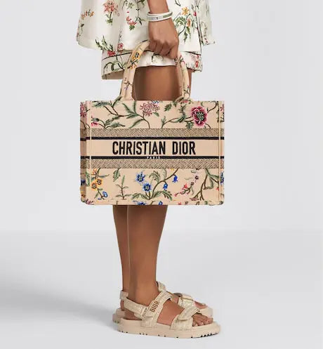 クリスチャン・ディオールのクリエイティブ・ディレクター、マリア・グラツィア・キウリによって発表された「ディオール ブックトート」は、ディオールの美学を体現する定番アイテムとなっています。毎日の必需品をすべて収納できるようデザインされたこのスタイルは、天然ラフィアにマルチカラーの「ディオール プティ フルール」モチーフの刺繍が施され、ディオール氏の花への情熱をロマンチックかつ鮮やかに表現しています。フロントにChristian Dior Parisのシグネチャーをあしらったミディアムサイズのトートバッグは、メゾンを象徴するサヴォアフェールを体現しており、手持ちでも肩掛けでもお使いいただけます。