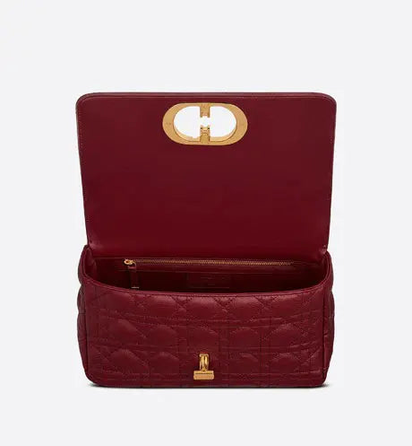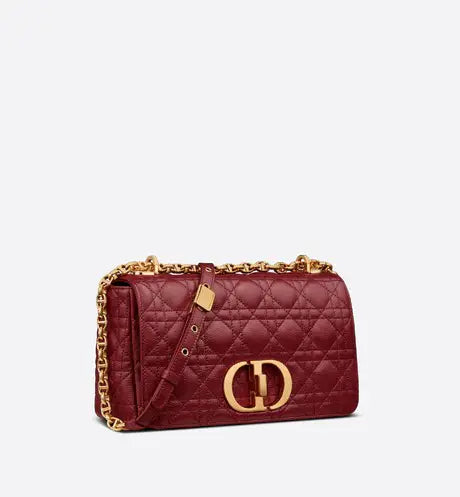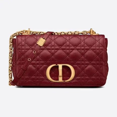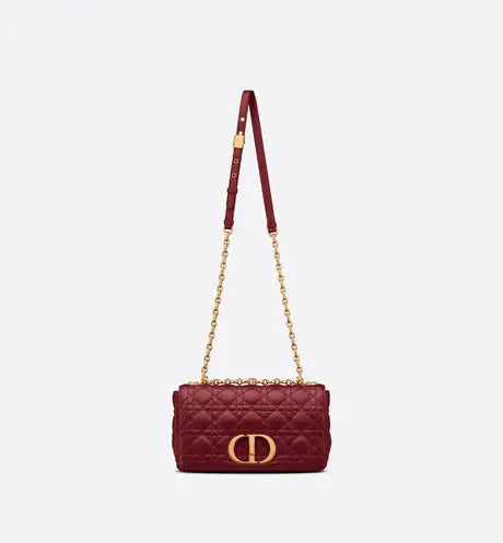 ディオール カロ バッグは、モダンさとタイムレスなエレガンスを融合させたバッグです。ブリックレッドのカーフスキンにカナージュステッチを施したデザイン。しなやかなフラップには、クリスチャン・ディオールの香水ボトルのシールからインスピレーションを得た、アンティークゴールド仕上げのメタル製「CD」ツイストクラスプがあしらわれています。「CD」のシグネチャーリンクが付いた取り外し可能なチェーンショルダーストラップは、手持ち、肩掛け、クロスボディバッグとしてお使いいただけます。また、メゾンを象徴する幅広の刺繍ストラップと付け替えることで、デイタイムにもイブニングドレスにも合わせやすいミディアムバッグです。