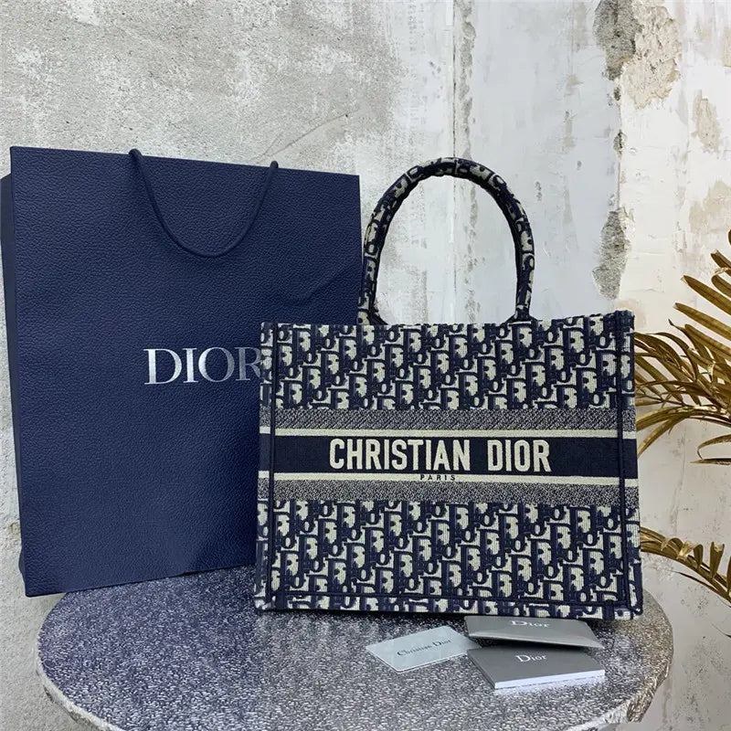 ブルーのディオール オブリーク エンブロイダリー ディオール ブック トート