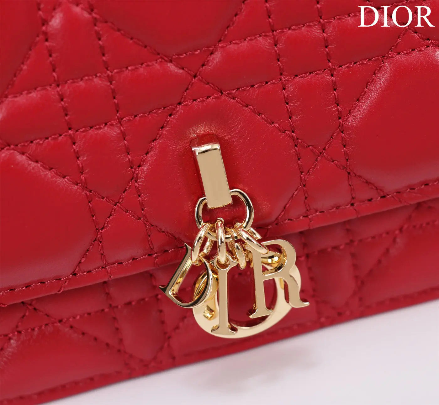 エレガントで機能的なデザインが魅力の「My Dior」ミニバッグが、ラインを彩ります。ラムスキンを使用し、フロントにはDIORチャームがあしらわれたフラップが特徴です。コンパートメントとカードスロットを備えた機能的なバッグは、必需品をすべて収納でき、デイタイムにもイブニングタイムにも最適なパートナーです。樹脂パールをあしらった取り外し可能なチェーンが付いたトップハンドルは、手持ちでもクロスボディバッグとしてもお使いいただけます。