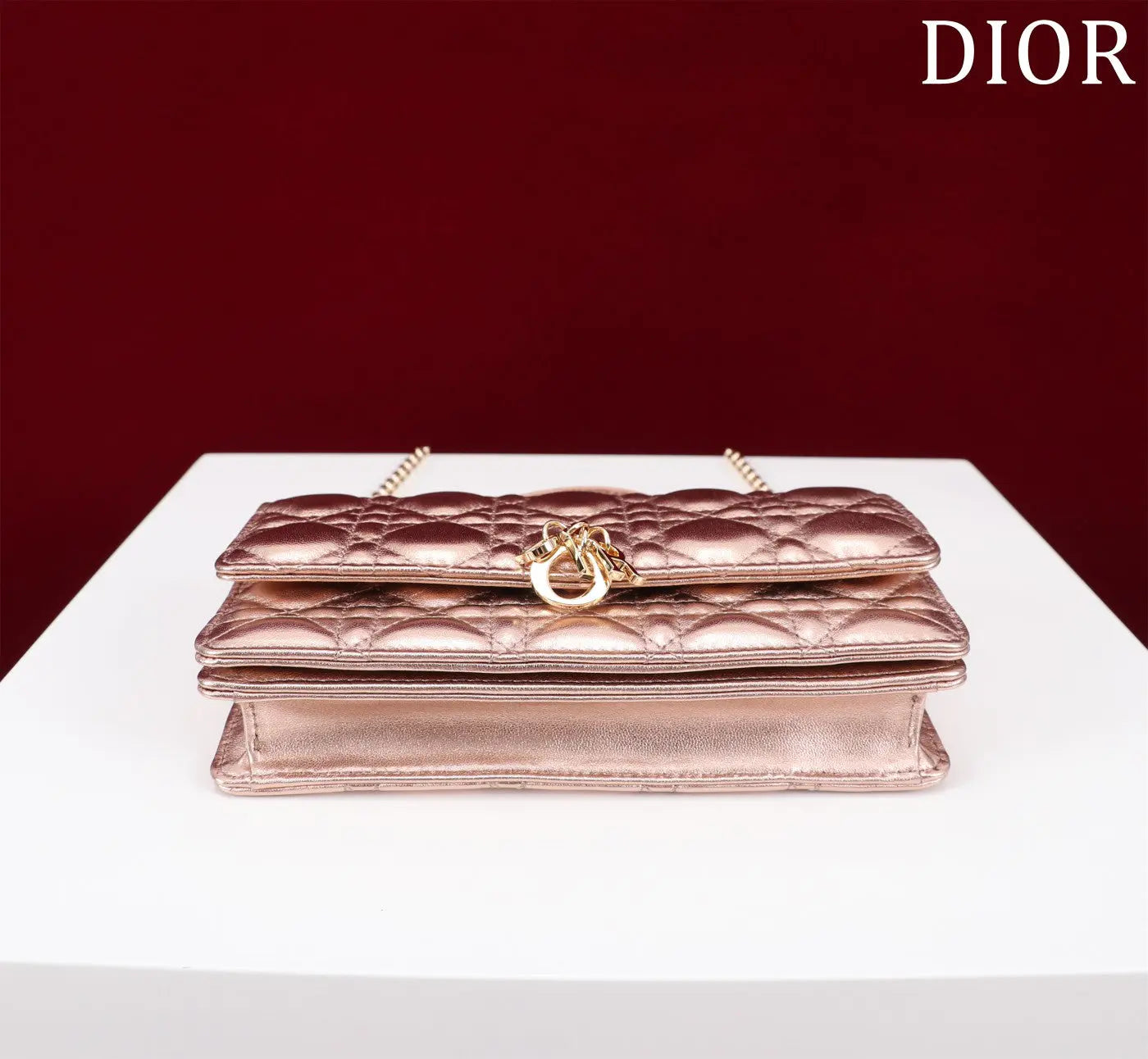 エレガントで機能的なデザインが魅力の「My Dior」ミニバッグが、ラインを彩ります。ラムスキンを使用し、フロントにはDIORチャームがあしらわれたフラップが特徴です。コンパートメントとカードスロットを備えた機能的なバッグは、必需品をすべて収納でき、デイタイムにもイブニングタイムにも最適なパートナーです。樹脂パールをあしらった取り外し可能なチェーンが付いたトップハンドルは、手持ちでもクロスボディバッグとしてもお使いいただけます。