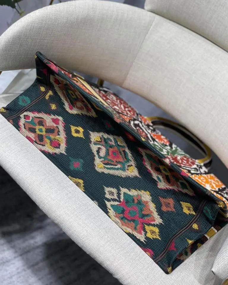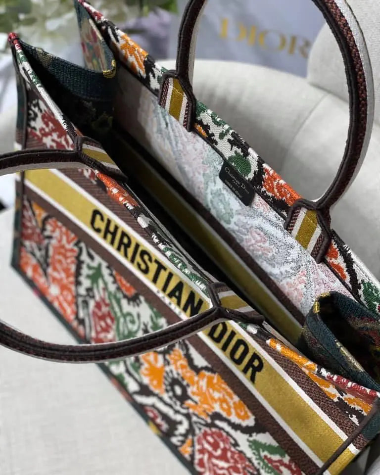 クリエイティブ・ディレクター、マリア・グラツィア・キウリが発表した独創的なスタイル、ディオール ブックトートは、ディオールの美学を体現する定番アイテムとなっています。毎日の必需品をすべて持ち運べるようデザインされたこのバッグは、マルチカラーの杢調ディオール ペイズリー モチーフが全面に刺繍されています。フロントには「Christian Dior」のシグネチャーがあしらわれ、サイドには同系色のグラフィックモチーフがコントラストを織りなすモダンなタッチがアクセントになっています。このキャリーオールバッグは、ディオールのサヴォアフェールを体現した逸品です。