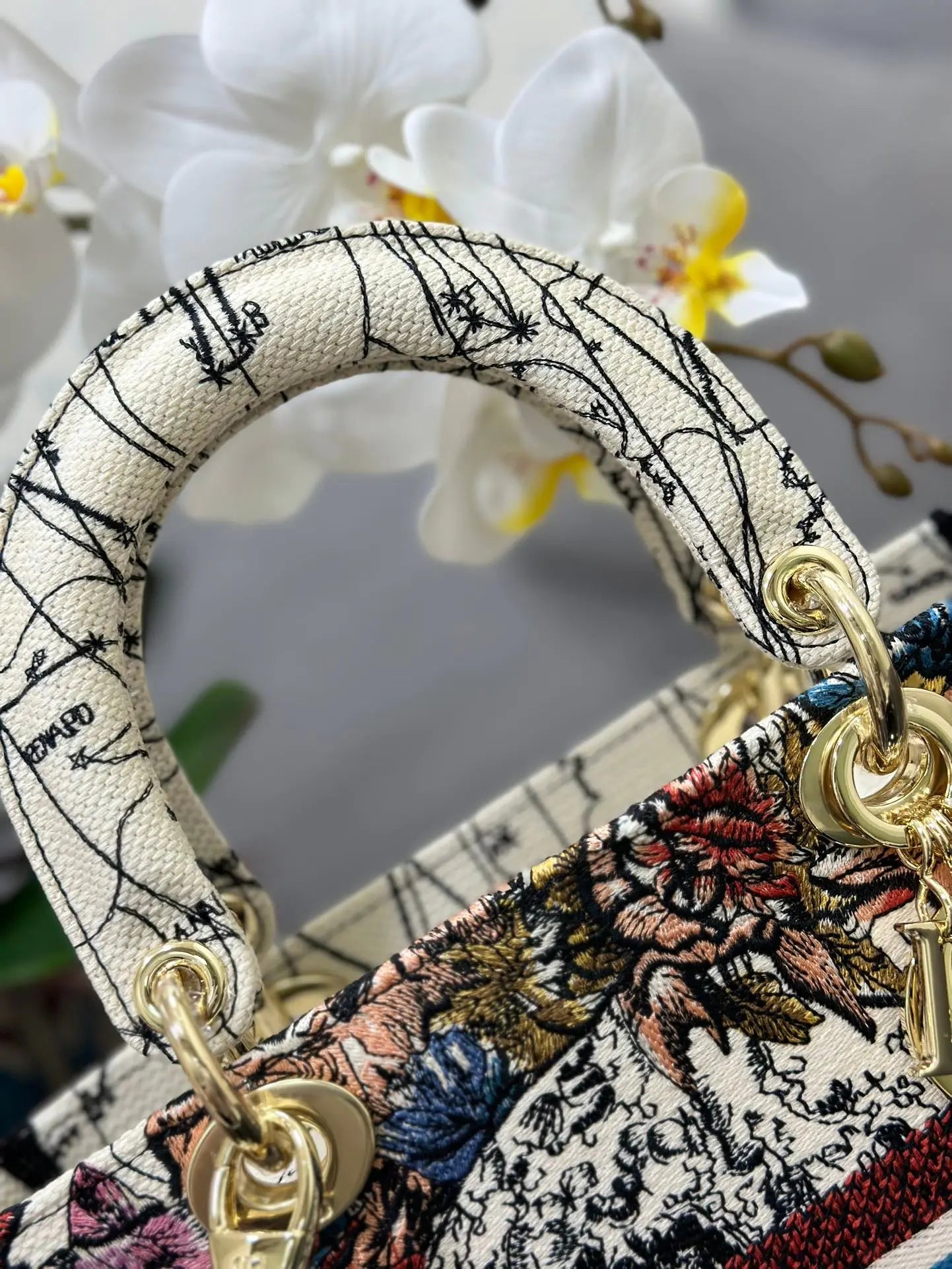 レディ D-Lite バッグは、クラシックなエレガンスとメゾンのモダンさを融合させたバッグです。メゾンを象徴する千鳥格子模様「ローズ・デ・ヴァン」を全面に刺繍であしらったデザインは、遊び心のある遊び心を感じさせます。フロントには「CHRISTIAN DIOR」のシグネチャーをあしらい、淡いゴールド仕上げのメタル製で厚みのある「DIOR」チャームがシルエットを美しく彩り、輝きを放ちます。幅広でリバーシブル、取り外し可能な刺繍入りショルダーストラップを備えたミディアムサイズのレディ D-Lite バッグは、手持ち、肩掛け、クロスボディバッグとしてお使いいただけます。