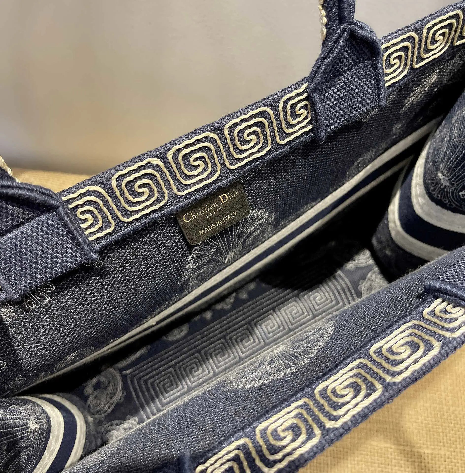 クリスチャン・ディオールのクリエイティブ・ディレクター、マリア・グラツィア・キウリによって発表された「ディオール ブック トート」は、ディオールの美学を体現する定番アイテムです。毎日の必需品をすべて収納できるようデザインされ、ブルーのマルチカラーのコルネリー刺繍が全体に施されています。華やかなモチーフは、ギリシャの芸術性への誘いです。フロントに「CHRISTIAN DIOR」のシグネチャーをあしらったこのトートは、メゾンのシグネチャーであるサヴォアフェールを体現しており、手持ちでも肩掛けでもお使いいただけます。