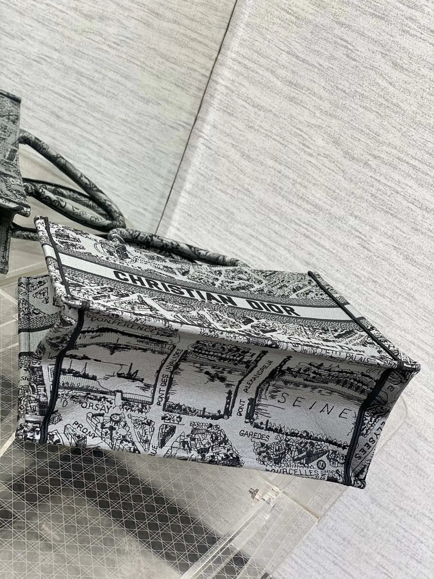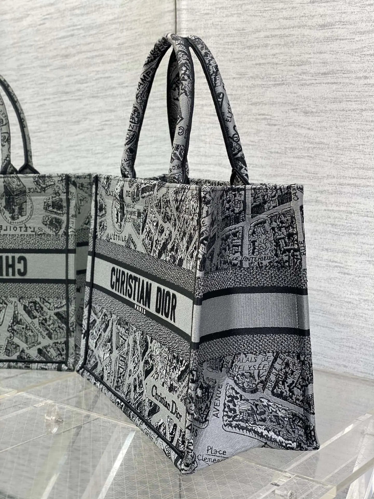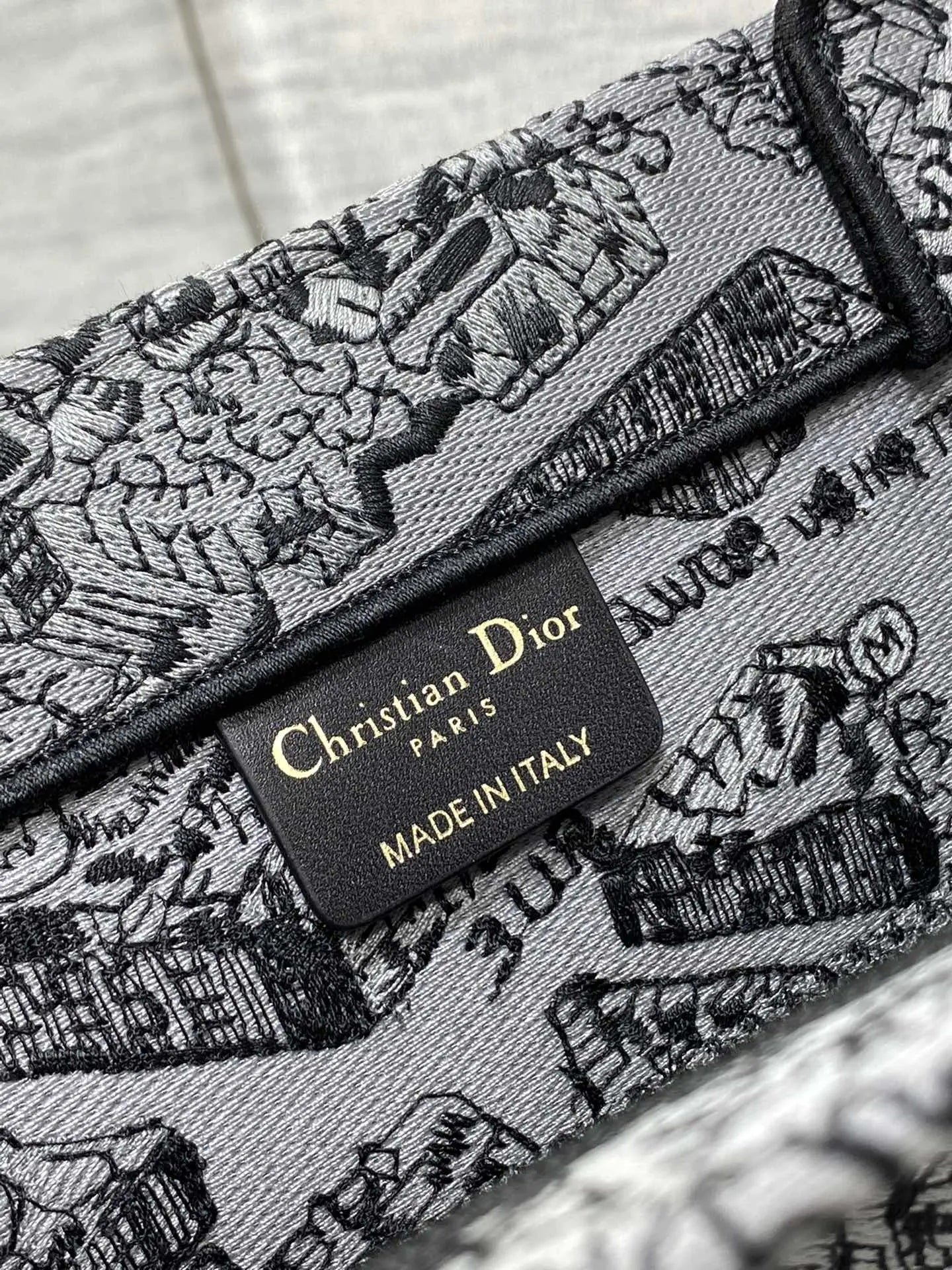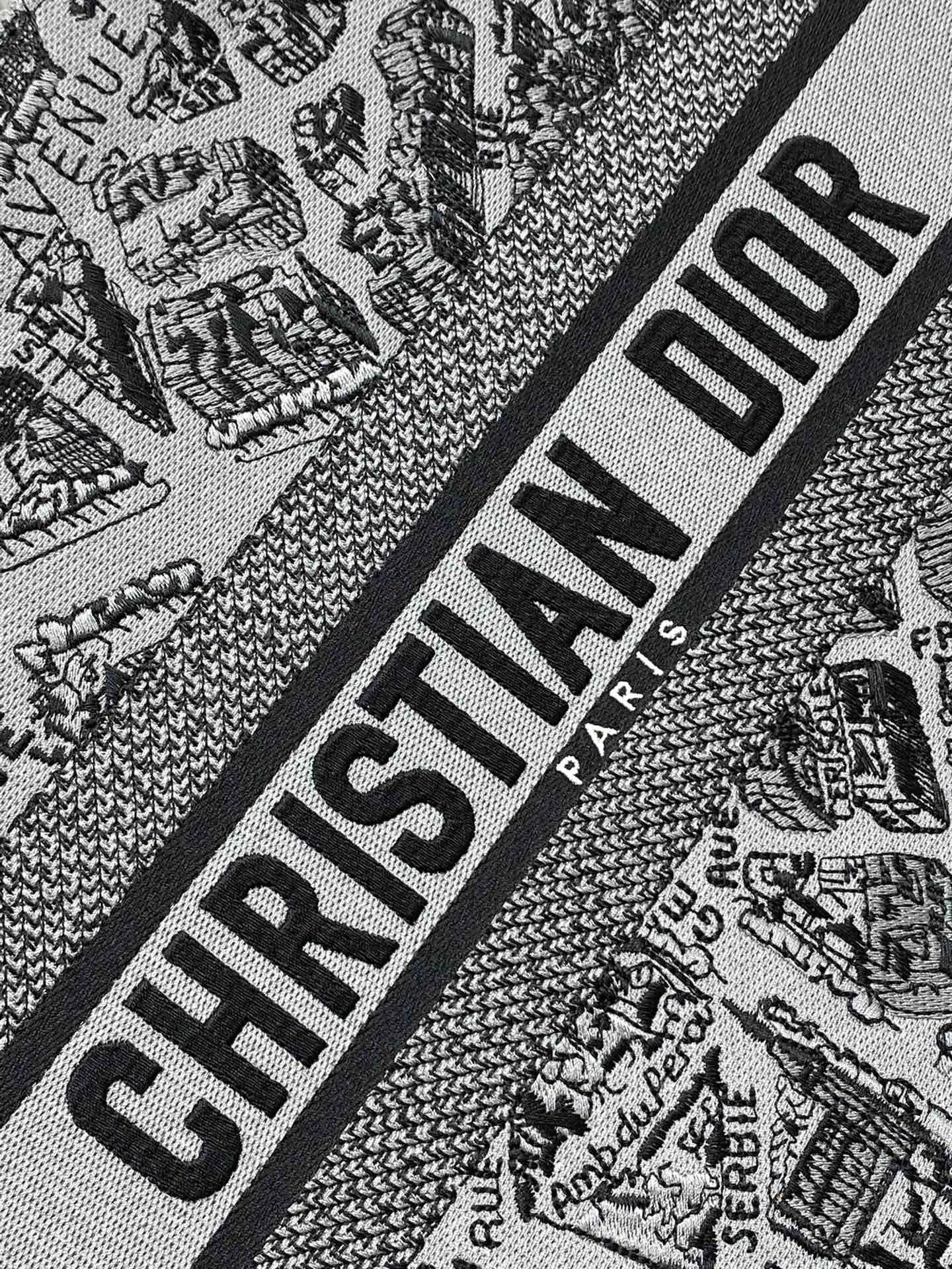 クリスチャン・ディオールのクリエイティブ・ディレクター、マリア・グラツィア・キウリによって発表された「ディオール ブックトート」は、ディオールの美学を体現する定番アイテムとなっています。毎日の必需品をすべて収納できるようデザインされたブラックのバッグには、ホワイトの「Dior Around the World」モチーフが刺繍であしらわれ、光沢のある糸とマットな糸を組み合わせた遊び心のあるデザインが魅力です。フロントには「CHRISTIAN DIOR」のシグネチャーがあしらわれ、メゾンのシグネチャーであるサヴォアフェールを体現しています。このトートバッグは、手持ちでも肩掛けでもお使いいただけます。