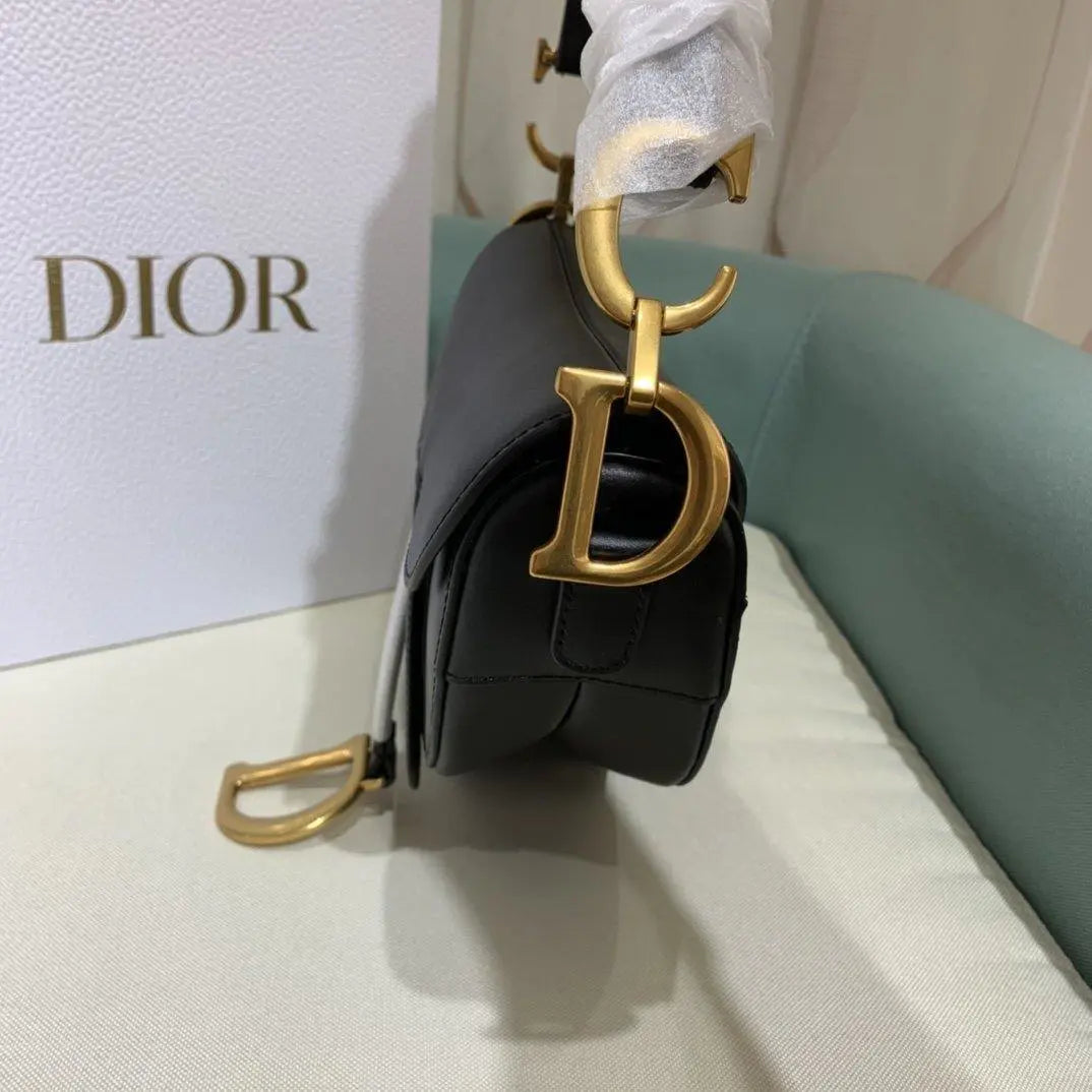 アイコニックな「サドルバッグ」が、マリア・グラツィア・キウリによって再び生まれ変わりました。マグネット式の「D」スターラップクラスプを備えたサドルフラップが特徴で、ハンドルの両サイドには「CD」のシグネチャーがあしらわれています。ブラックのグレインカーフスキンに、アンティークゴールド仕上げのメタル金具があしらわれています。サドルバッグは手持ちでも肩掛けでも使用でき、様々なショルダーストラップでカスタマイズ可能です。