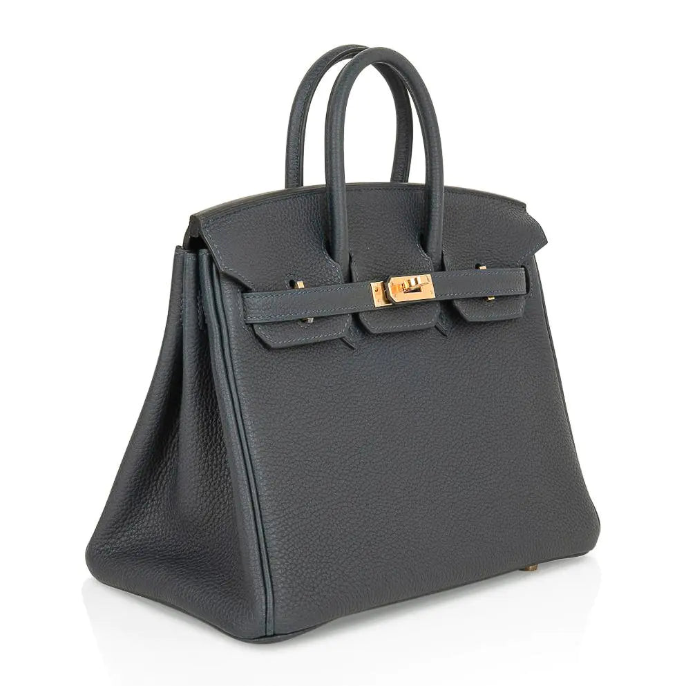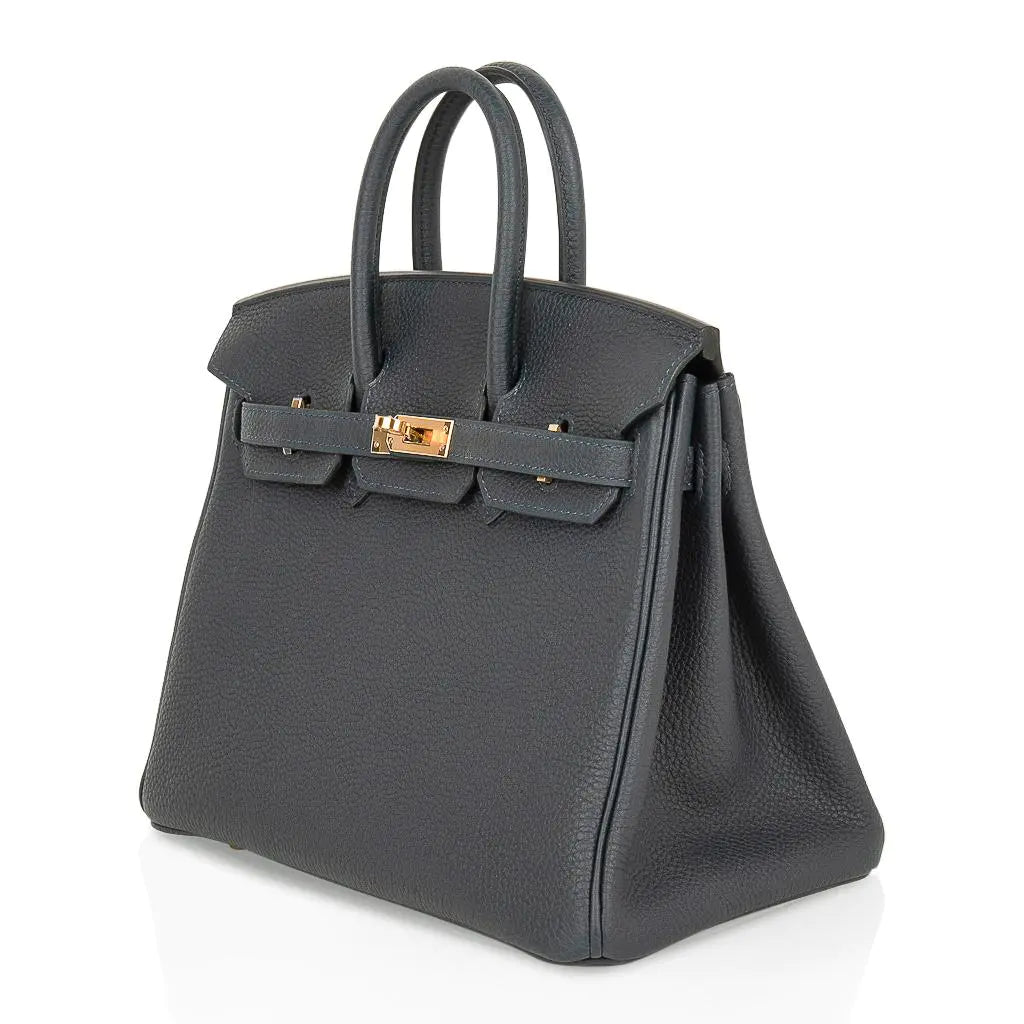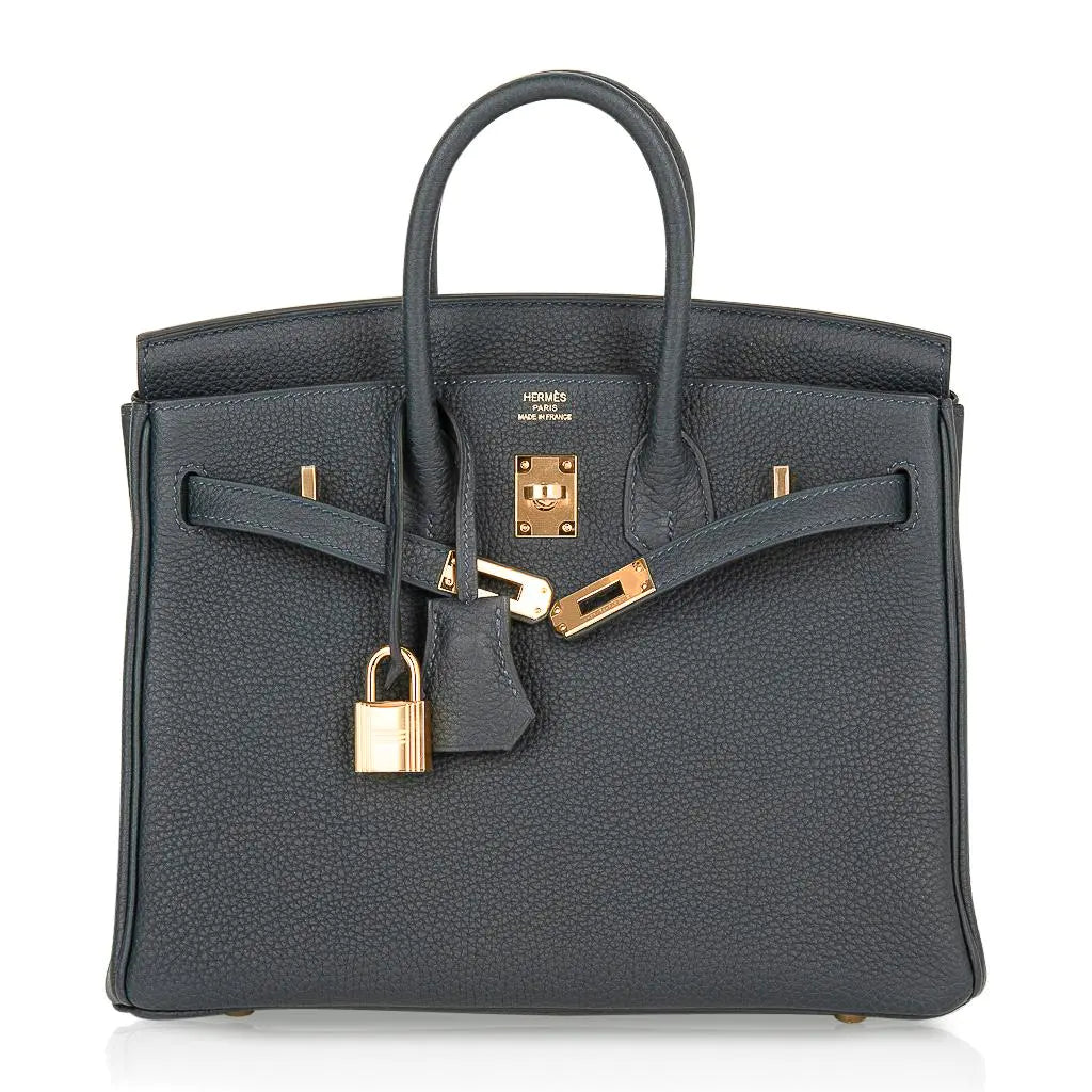 エルメス バーキン25 バッグ(本物保証)。トーゴレザーを使用した、新しいヴェール・ルソーが特徴です。この豊かでエレガントなニュートラルカラーは、ワードローブの様々なカラースキームに美しく調和します。ゴールドの金具がアクセントになっています。新品または未使用。クロシェットに鍵と鍵穴、エルメス特製ボックス、スリーパー、レインコートが付属します。最終販売。バッグサイズ:長さ 25cm / 9.75インチ、高さ 18.5cm / 7.25インチ、奥行き 13cm / 5.25インチ。ハンドルの高さ:3インチ。