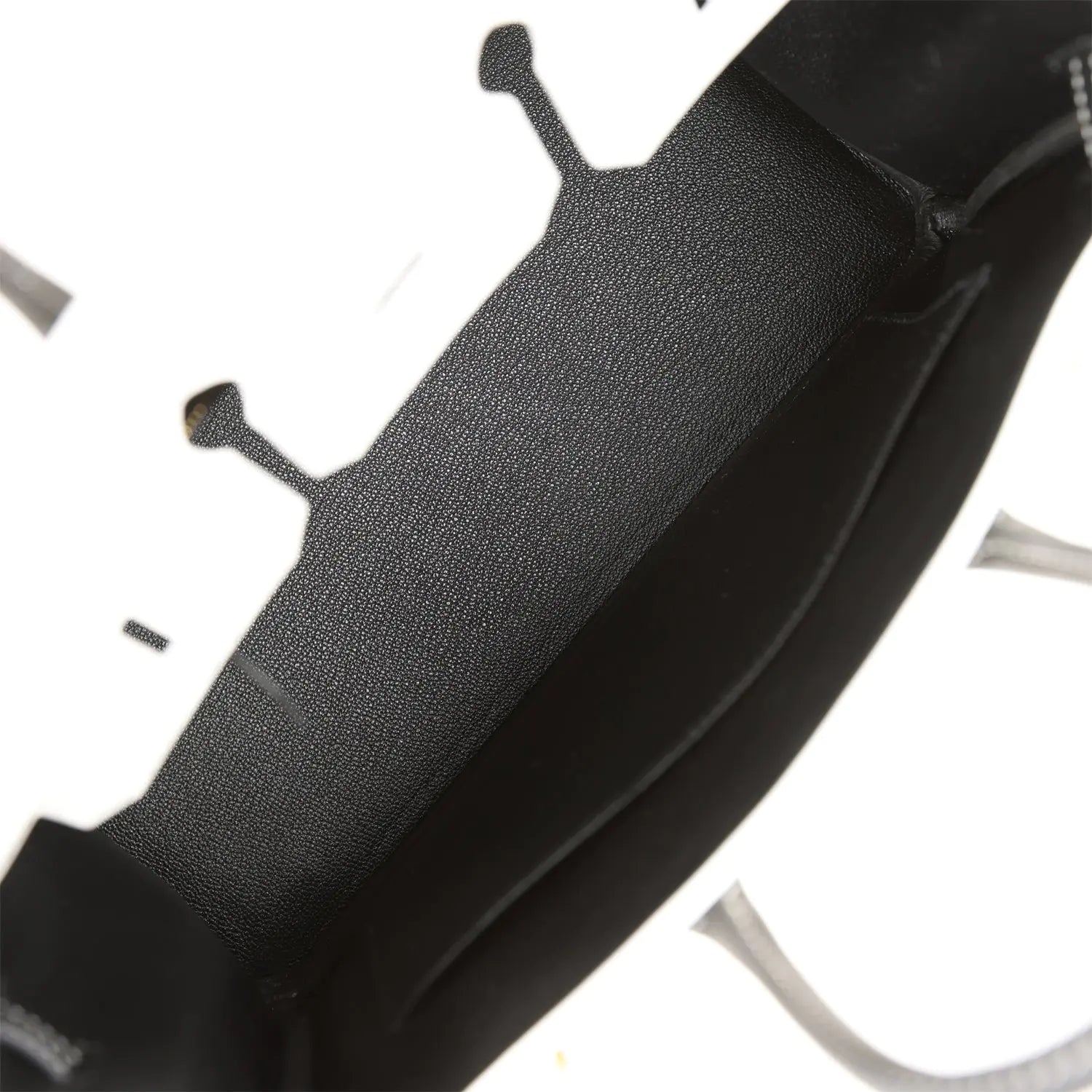 内側はブラックのシェーブルレザーで裏打ちされ、エルメスの刻印入りジッパープルが付いたジップポケット1つと、反対側にオープンポケット1つを備えています。