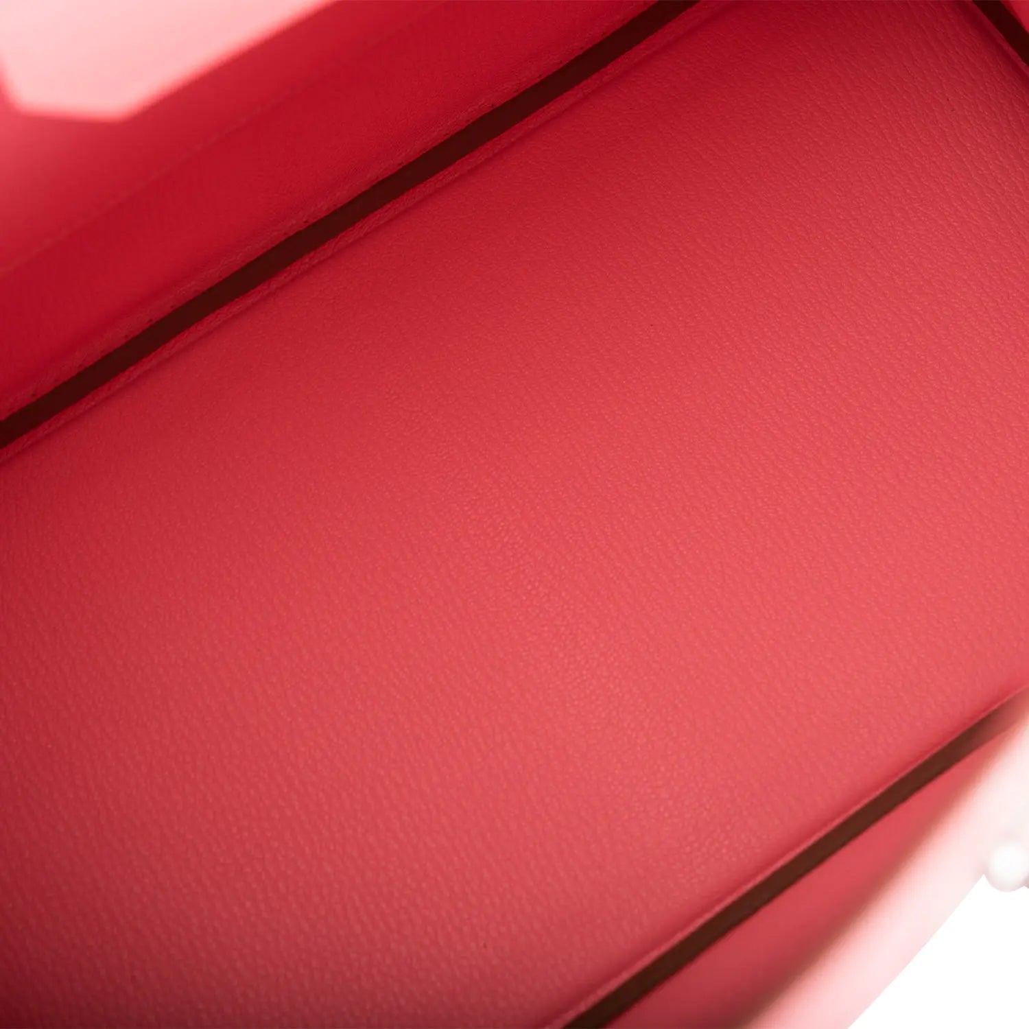 内側はローズ・コンフェッティ・シェーブルの裏地付きで、エルメスの刻印入りジッパープルが付いたジッパーポケットと、反対側にオープンポケットが付いています。