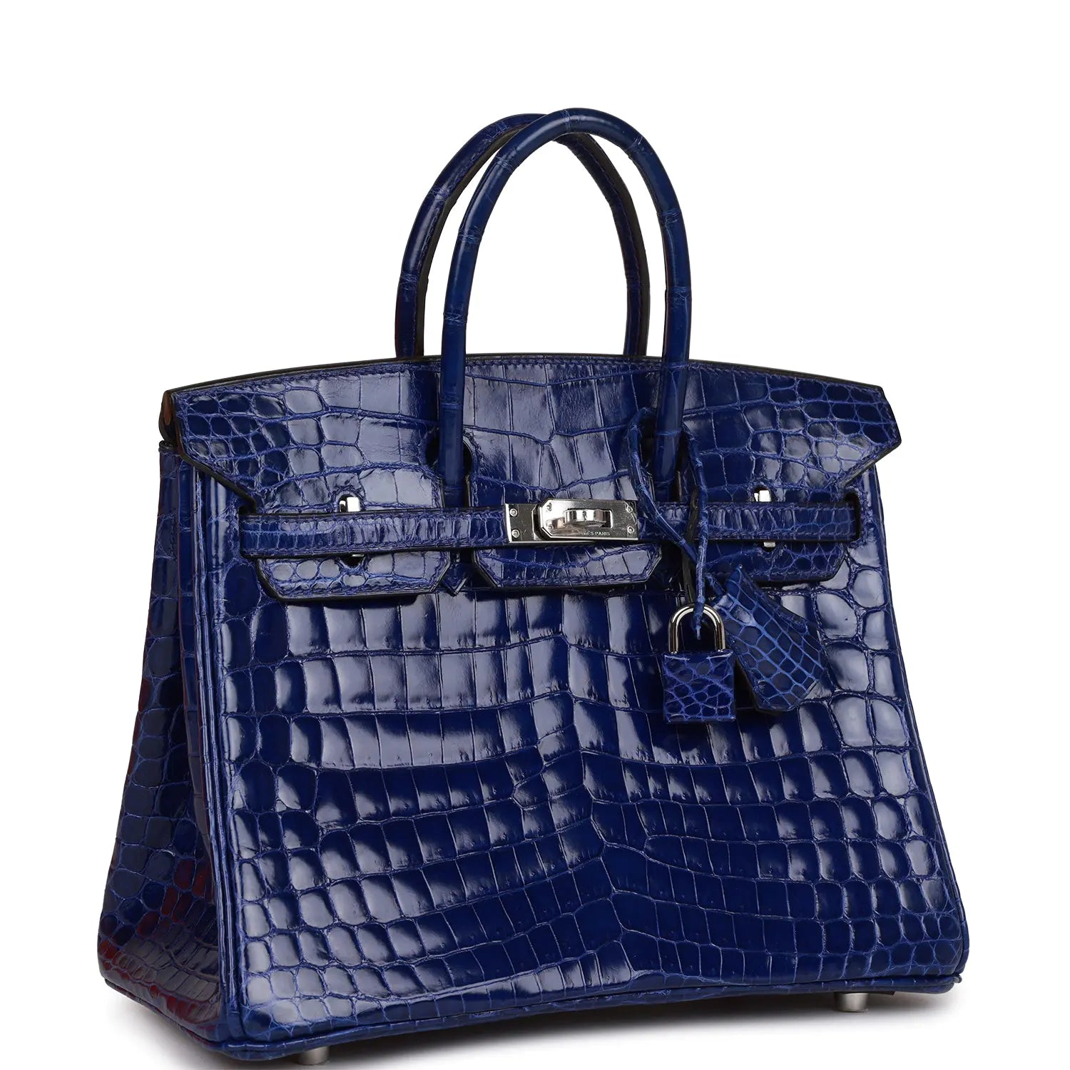 エルメス バーキン 25 ブルー エレクトリック シャイニー ニロティカス クロコダイル パラジウム金具