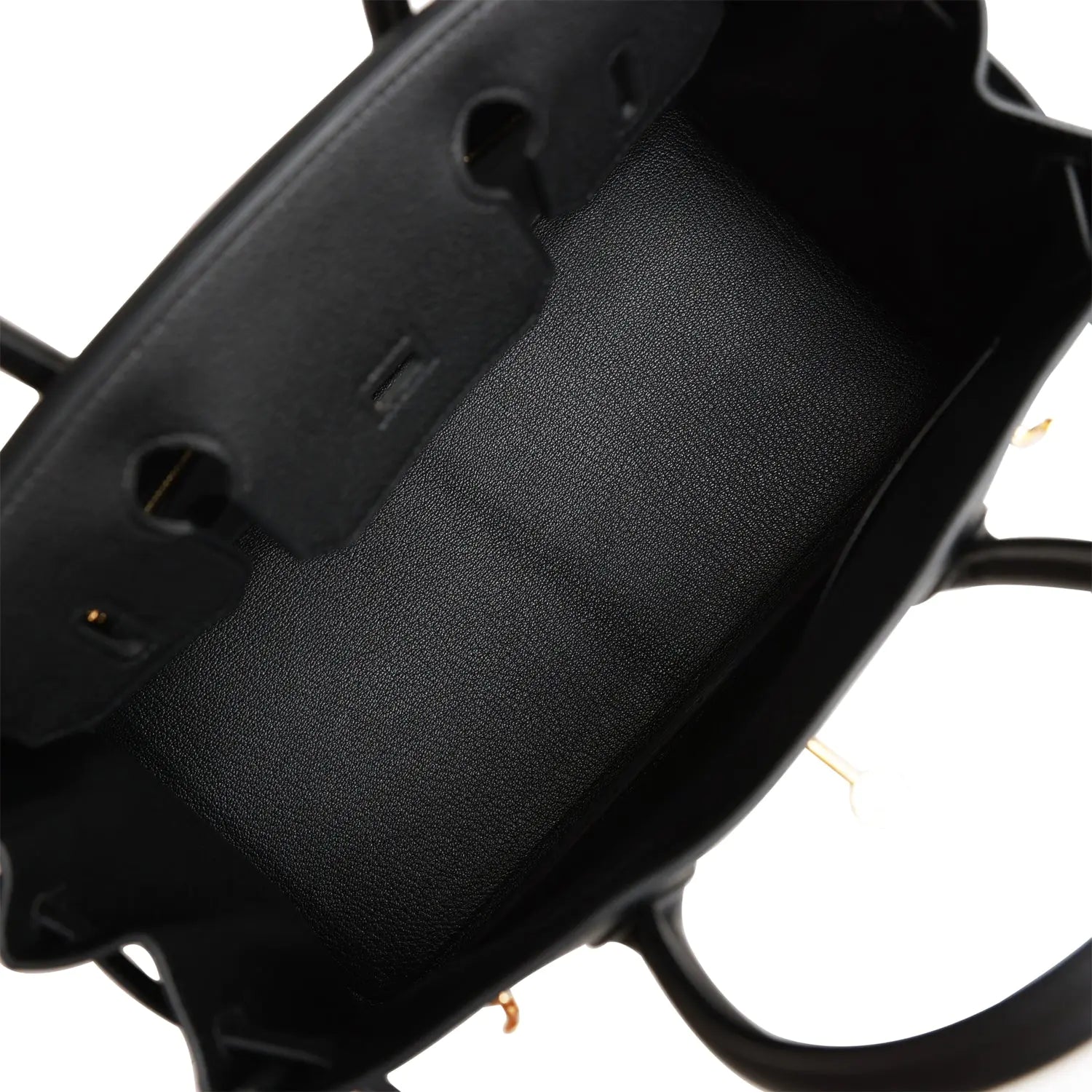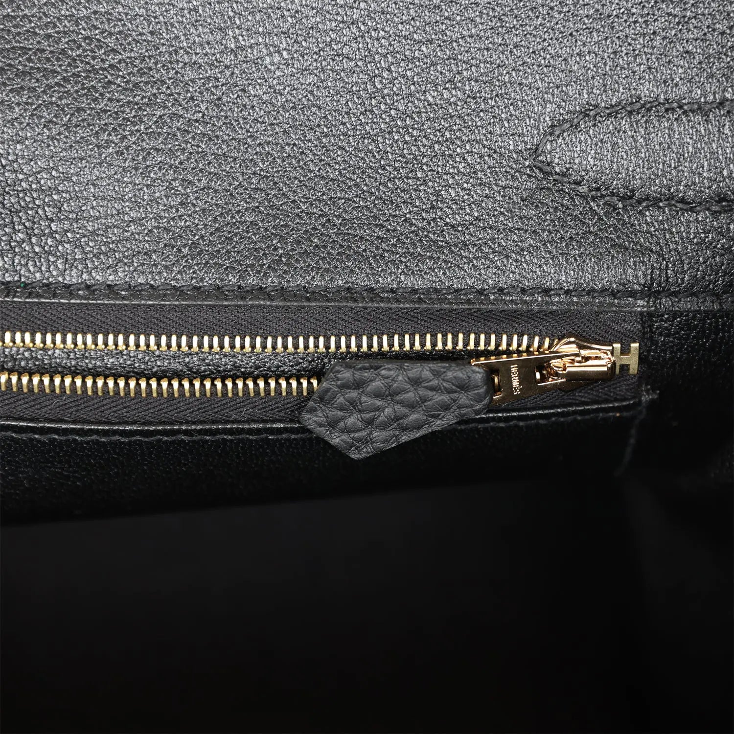内側はブラックのシェーブルレザーで裏打ちされ、エルメスの刻印入りジッパープル付きのジッパーポケット1つと、反対側にオープンポケット1つを備えています。