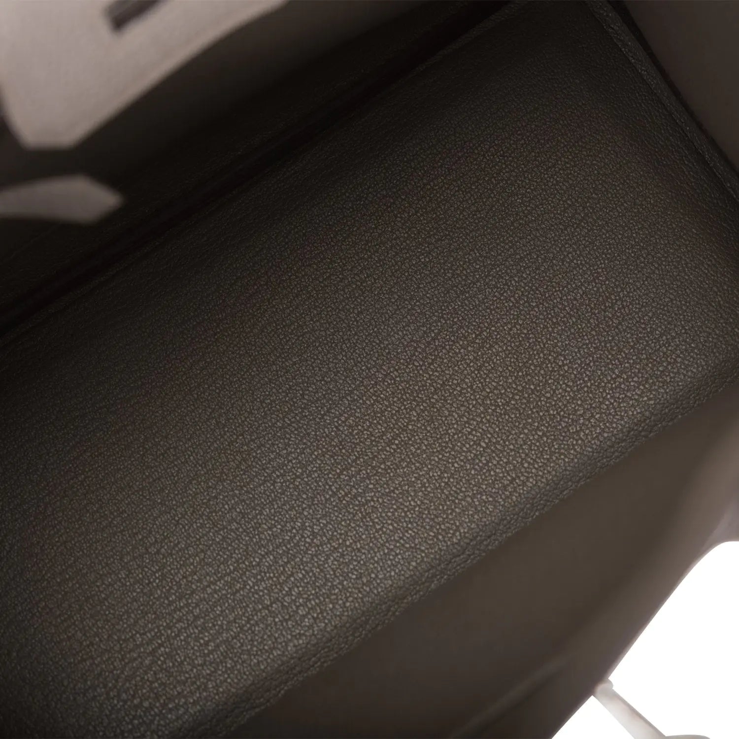 このバーキンは、パラジウム金具付きのエタン トゴ レザーで作られており、同系色のステッチ、フロント トグル留めの 2 本のストラップ、ロックと 2 つの鍵付きのクロシェット、ダブル ロール ハンドルが特徴です。