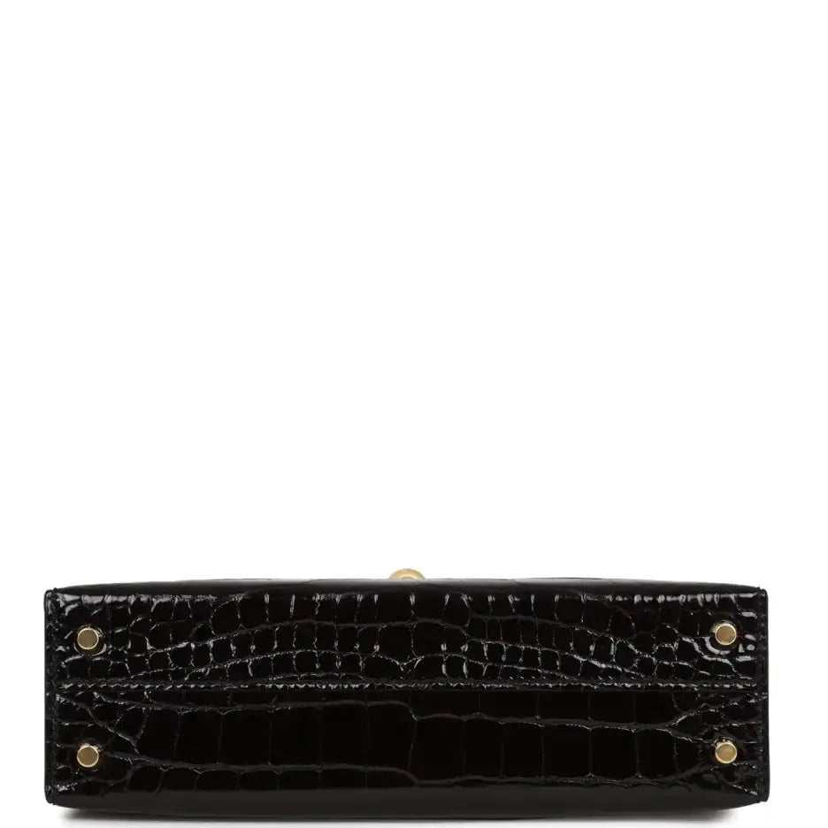 セリエ スタイルのこの小さなケリーは、ゴールドの金具が付いた黒の光沢のあるミシシッピアリゲーターでできており、同系色のステッチ、フロント トグル留めの 2 つのフロント ストラップ、シングル ロール ハンドル、取り外し可能なショルダー ストラップが付いています。
