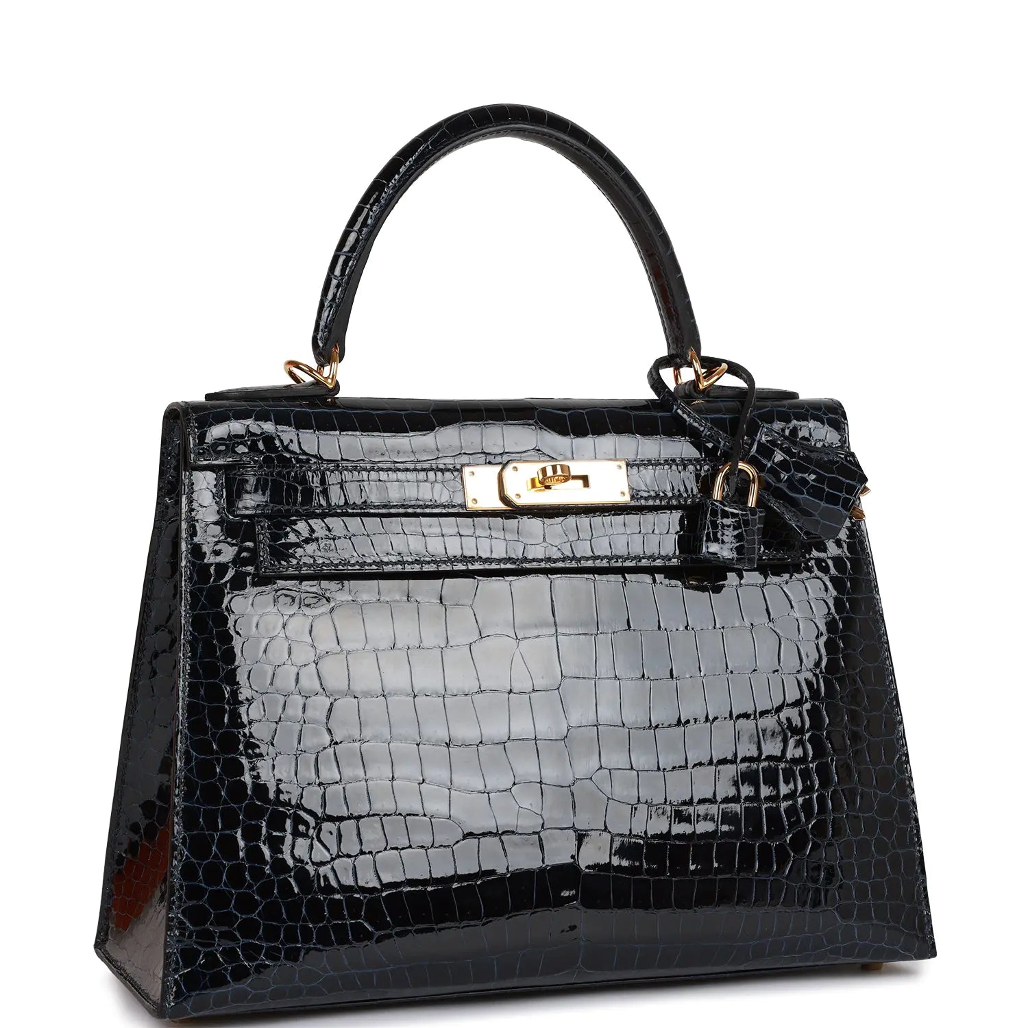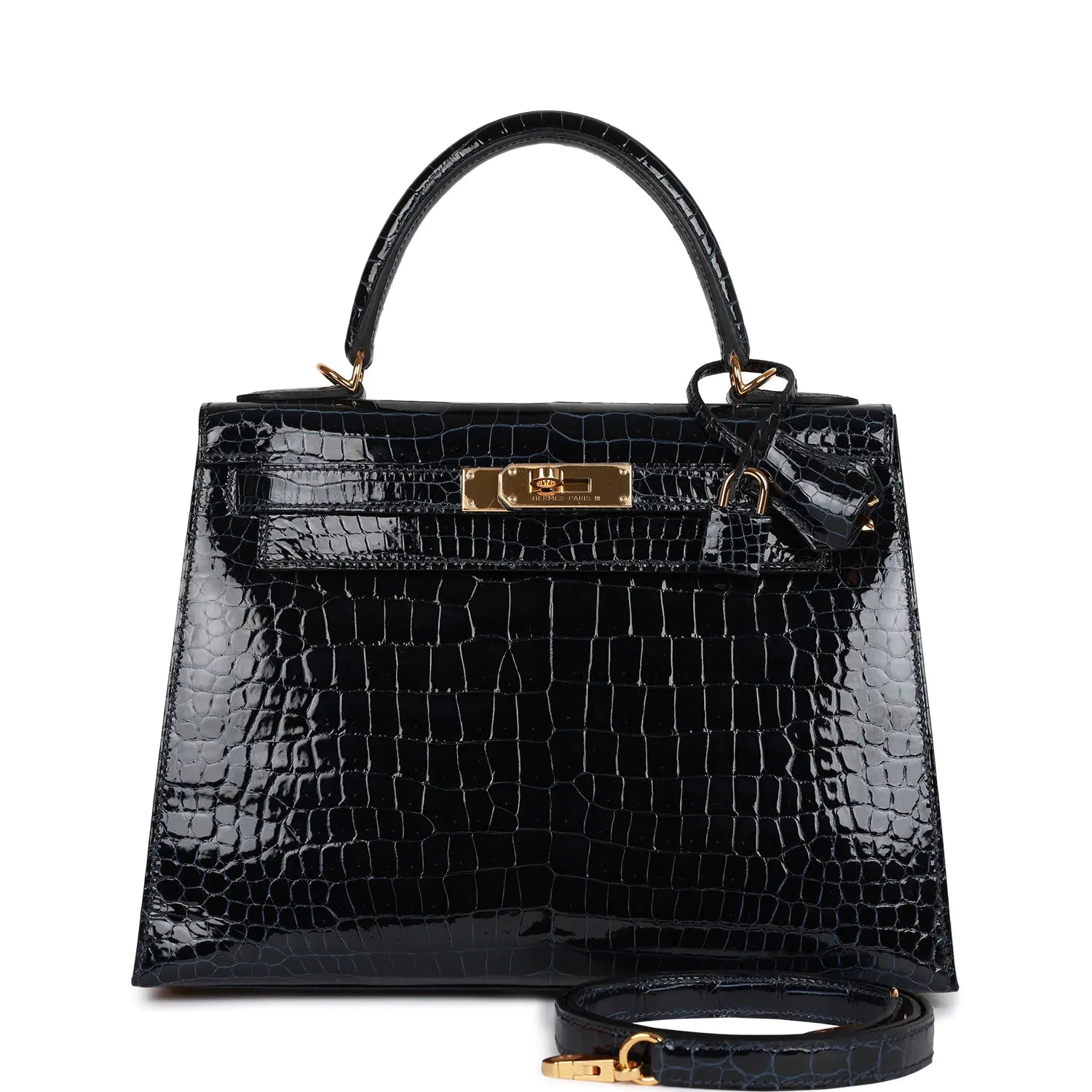 エルメス ケリーセリエ 28 ブルー バルティック シャイニーポロサス クロコダイル ゴールド金具