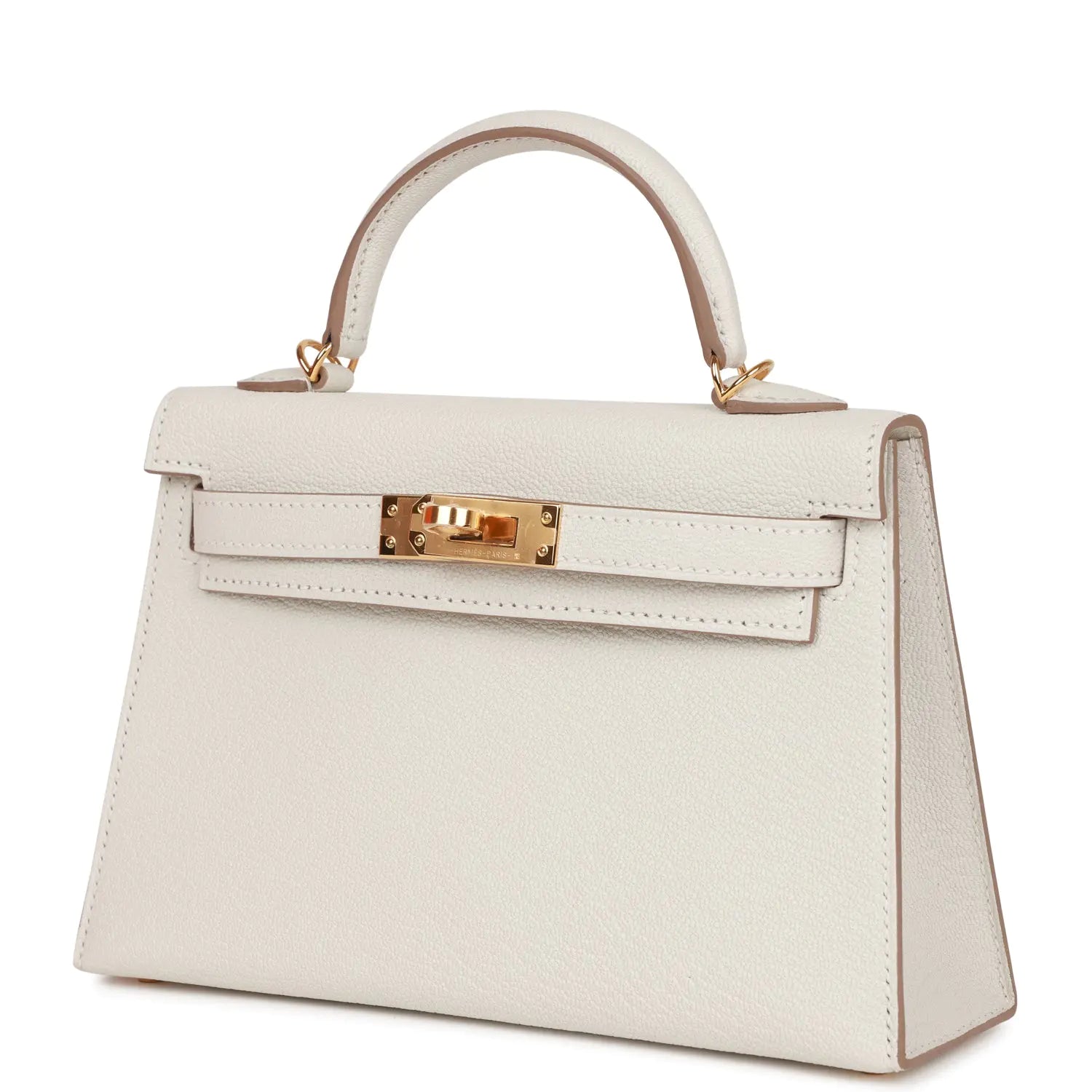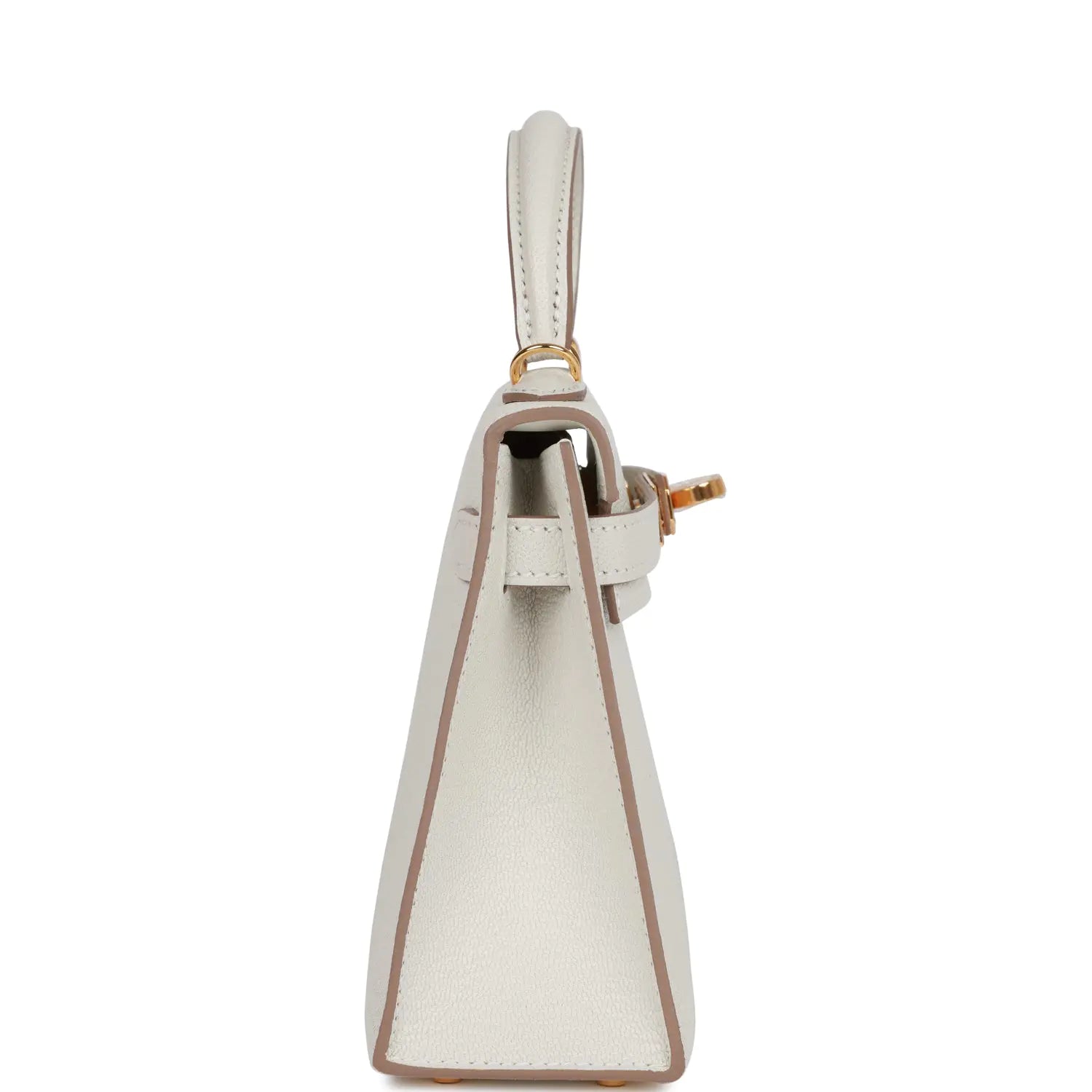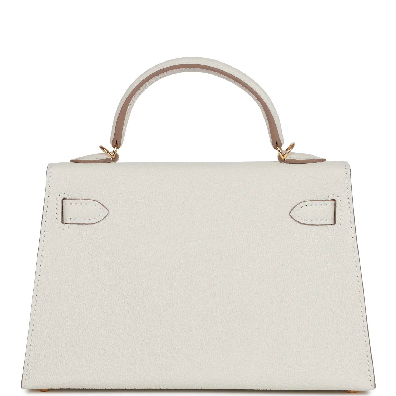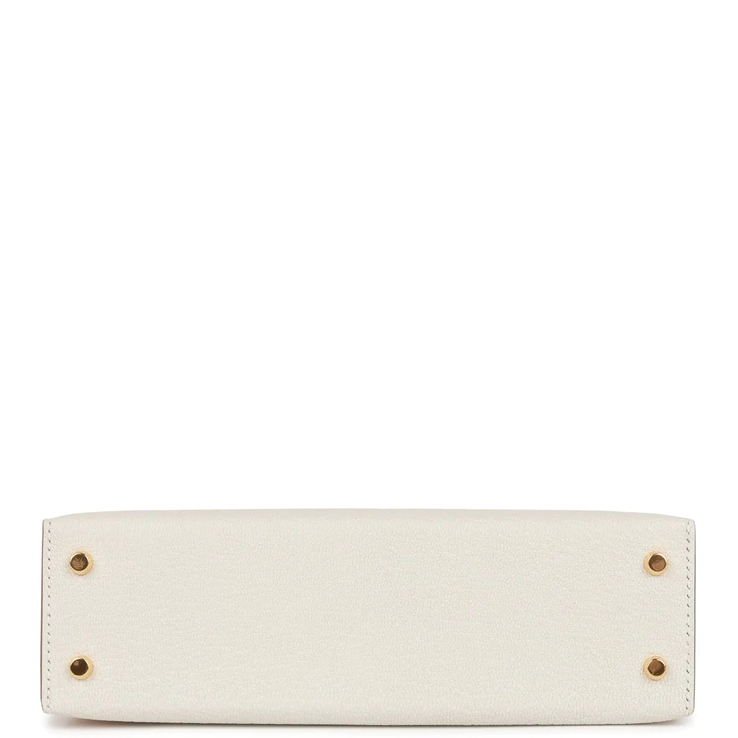 このセリエ スタイルのケリーは、ゴールドの金具が付いたマッシュルーム シェーブル レザーでできており、同系色のステッチ、前面のトグル留めの 2 本のストラップ、シングル ロール ハンドル、取り外し可能なショルダー ストラップが付いています。