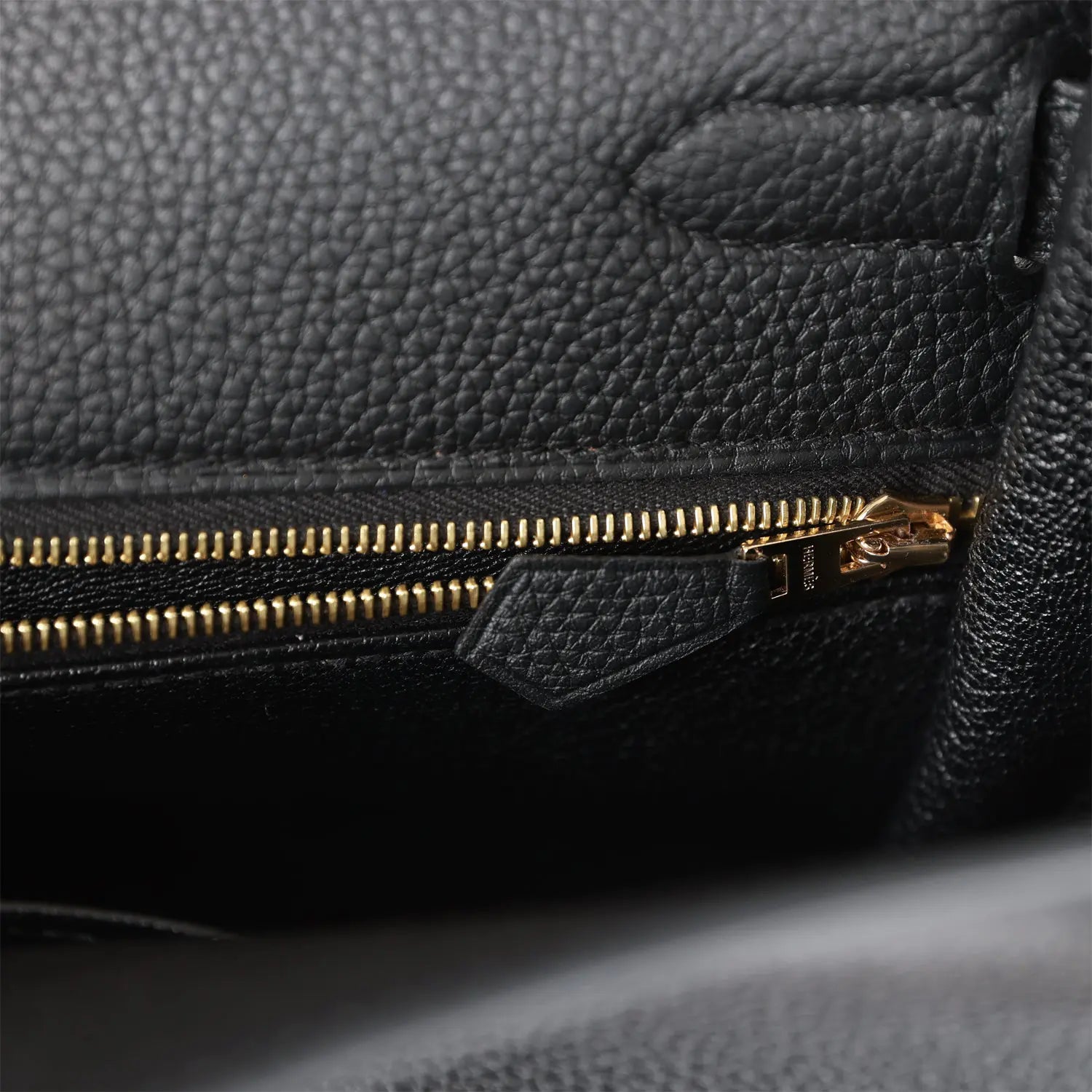 内側はブラックのシェーブルレザーのライニングが施され、エルメスの刻印入りプル付きのジップポケット1つと、反対側にオープンポケット2つが付いています。