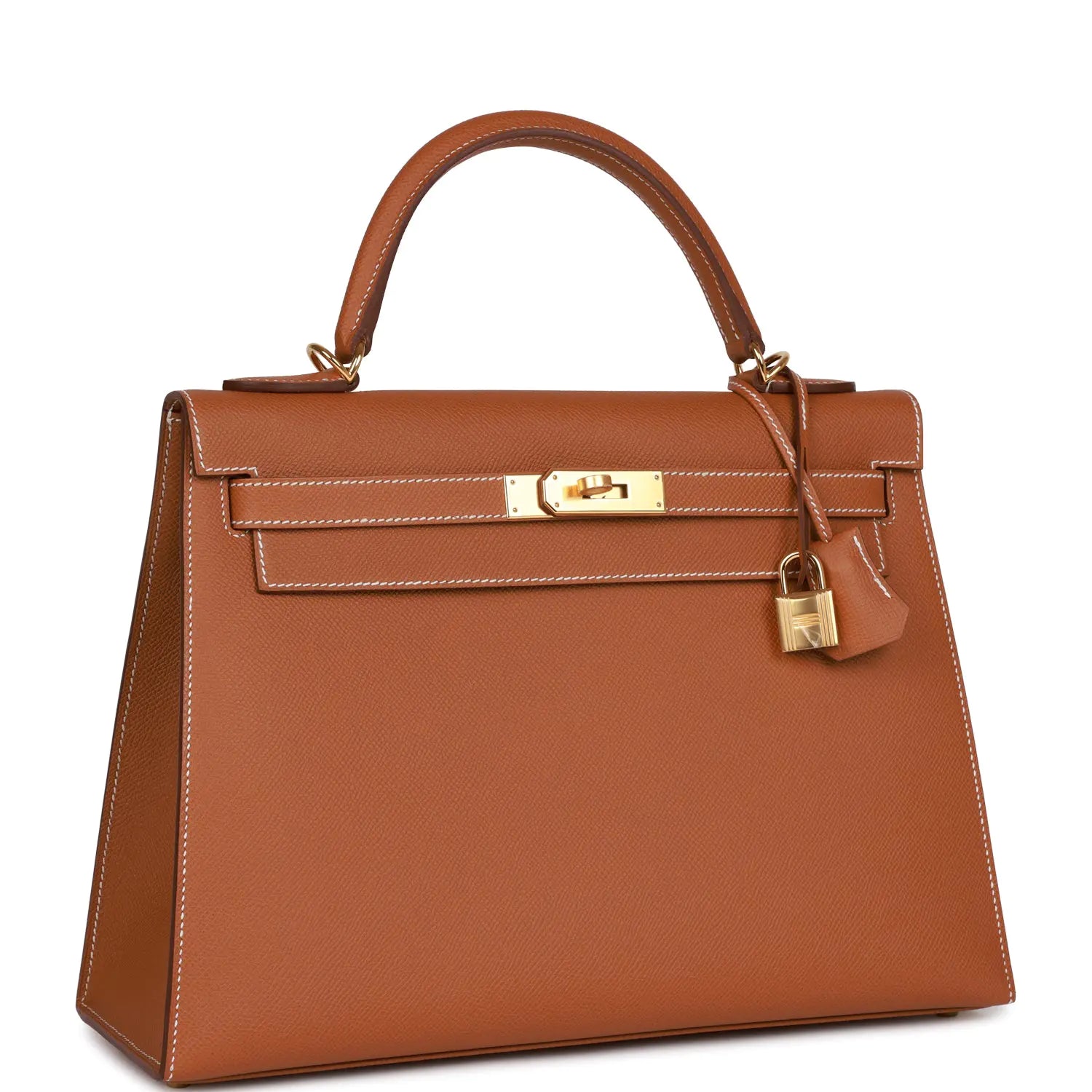 セリエスタイルのこのケリーバッグは、ゴールドのエプソムレザーにゴールドの金具、コントラストステッチ、フロントトグル開閉の2本のストラップ、鍵と鍵2本付きのクロシェット、シングルロールハンドル、そしてオプションのショルダーストラップが特徴です。